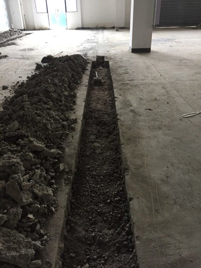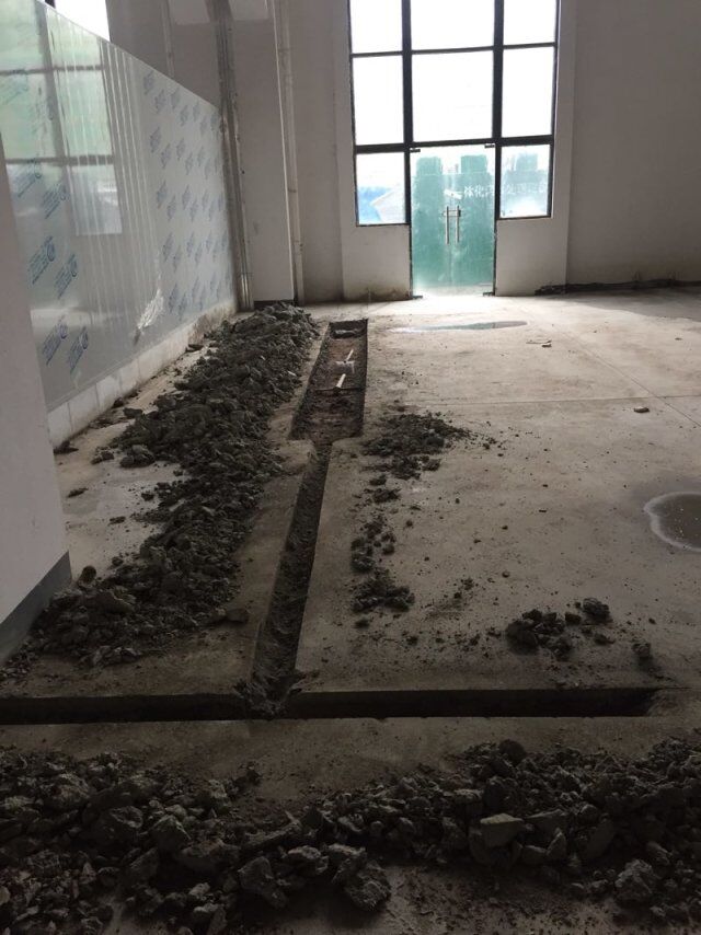 四川憨憨豆匠食品有限公司二期廠房裝修現(xiàn)場(chǎng),線管施工,地坪開始施工中
