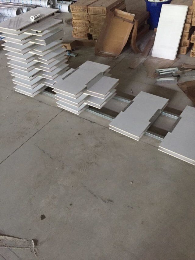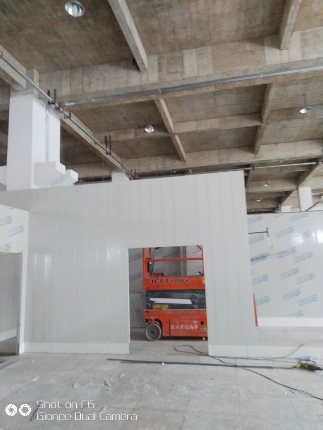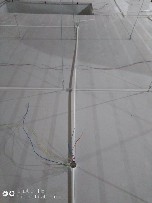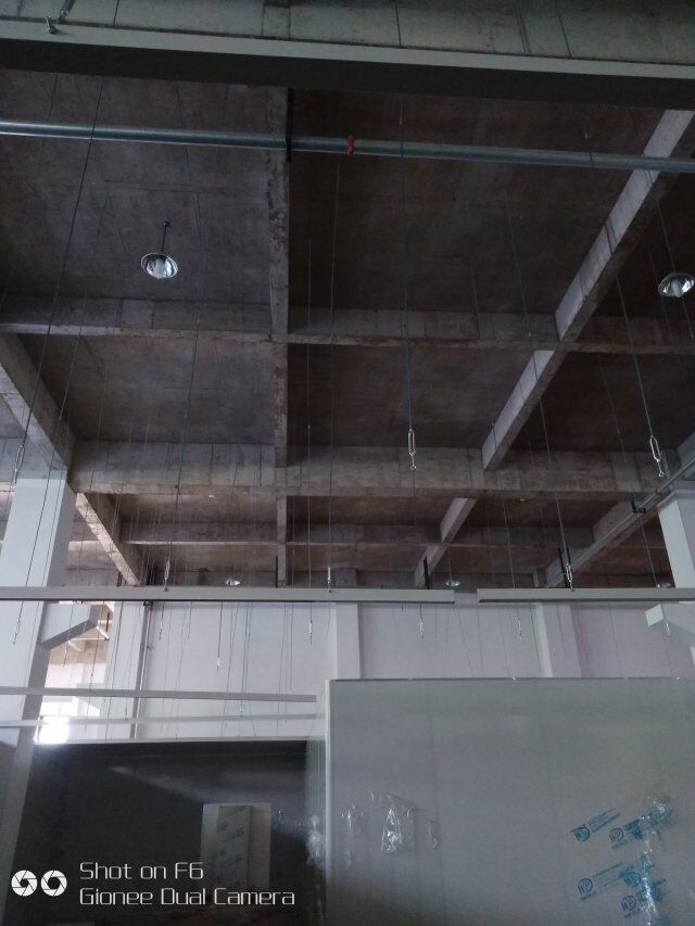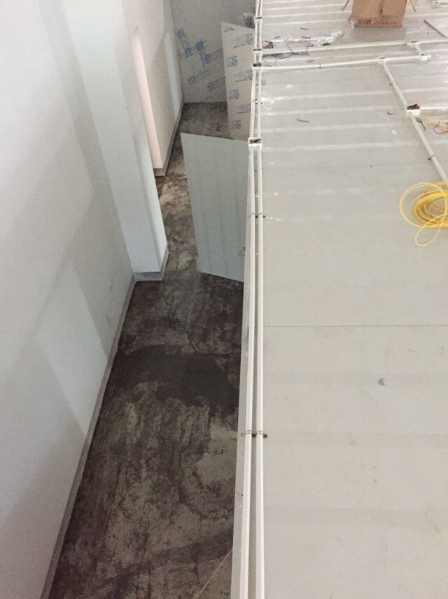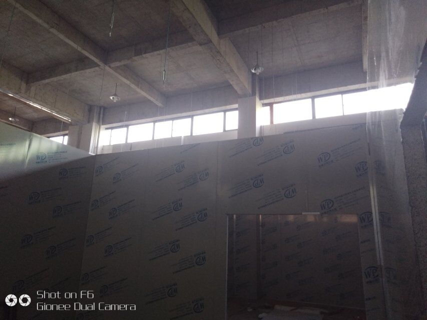 四川憨憨豆匠食品有限公司二期廠房裝修現(xiàn)場(chǎng):掉頂板,開關(guān)插座開孔