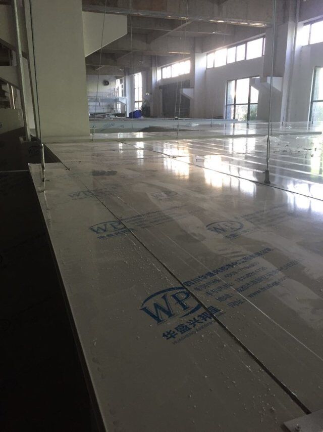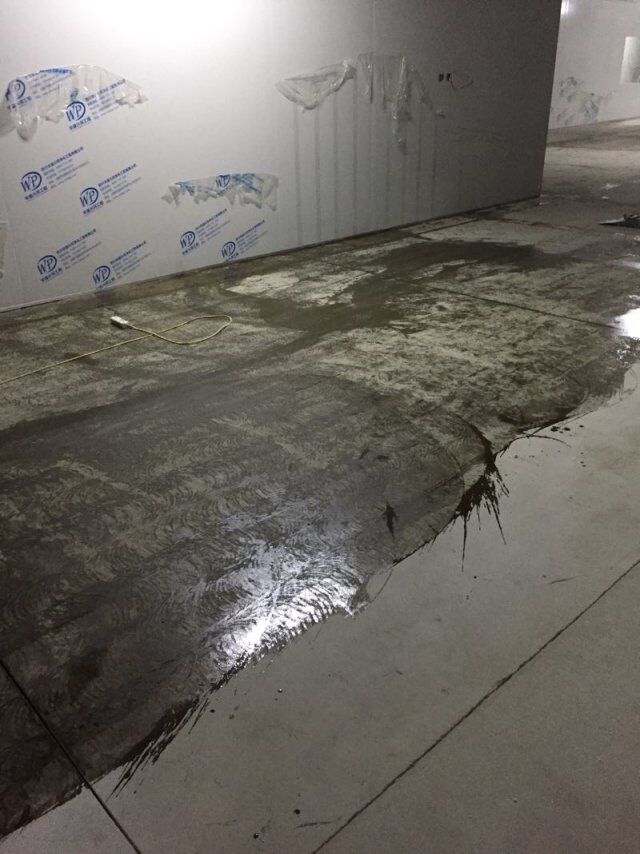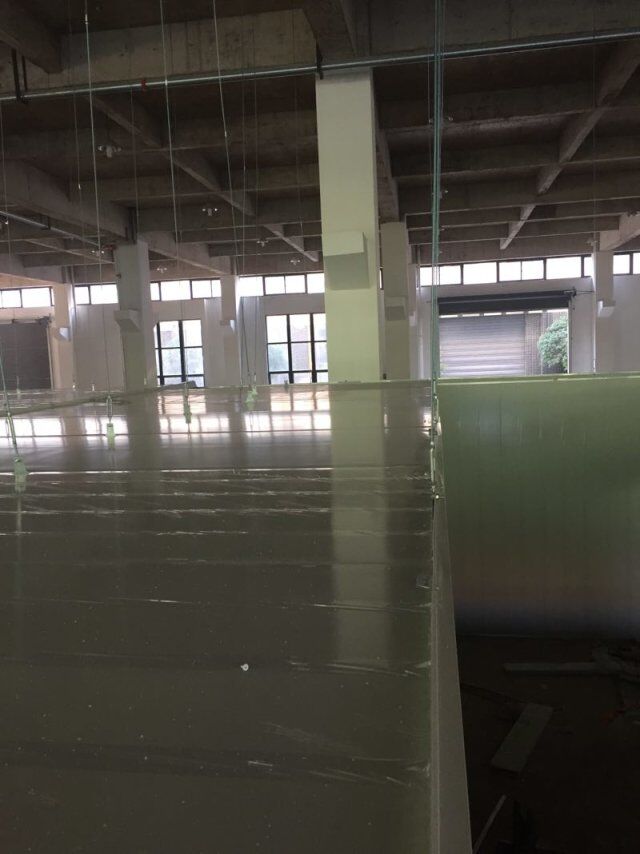 四川憨憨豆匠食品有限公司二期廠房裝修現(xiàn)場(chǎng),撕保護(hù)膜,地坪施工