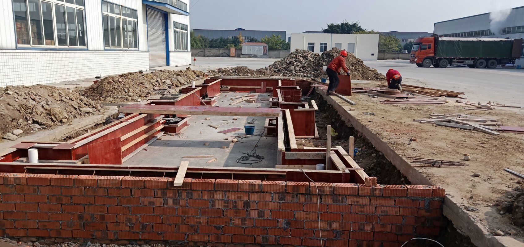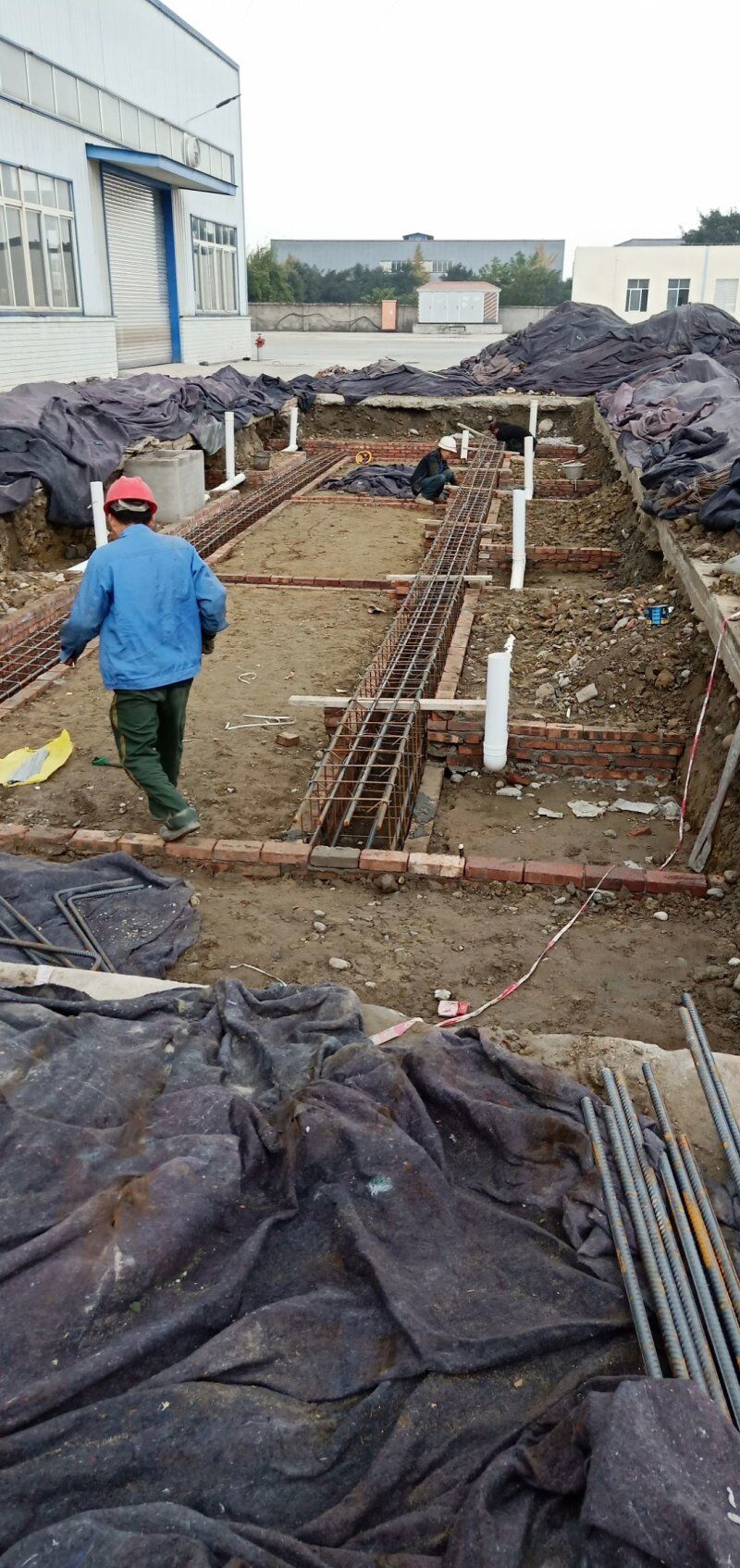 車間外邊排水管安裝,車間排水墻砌磚