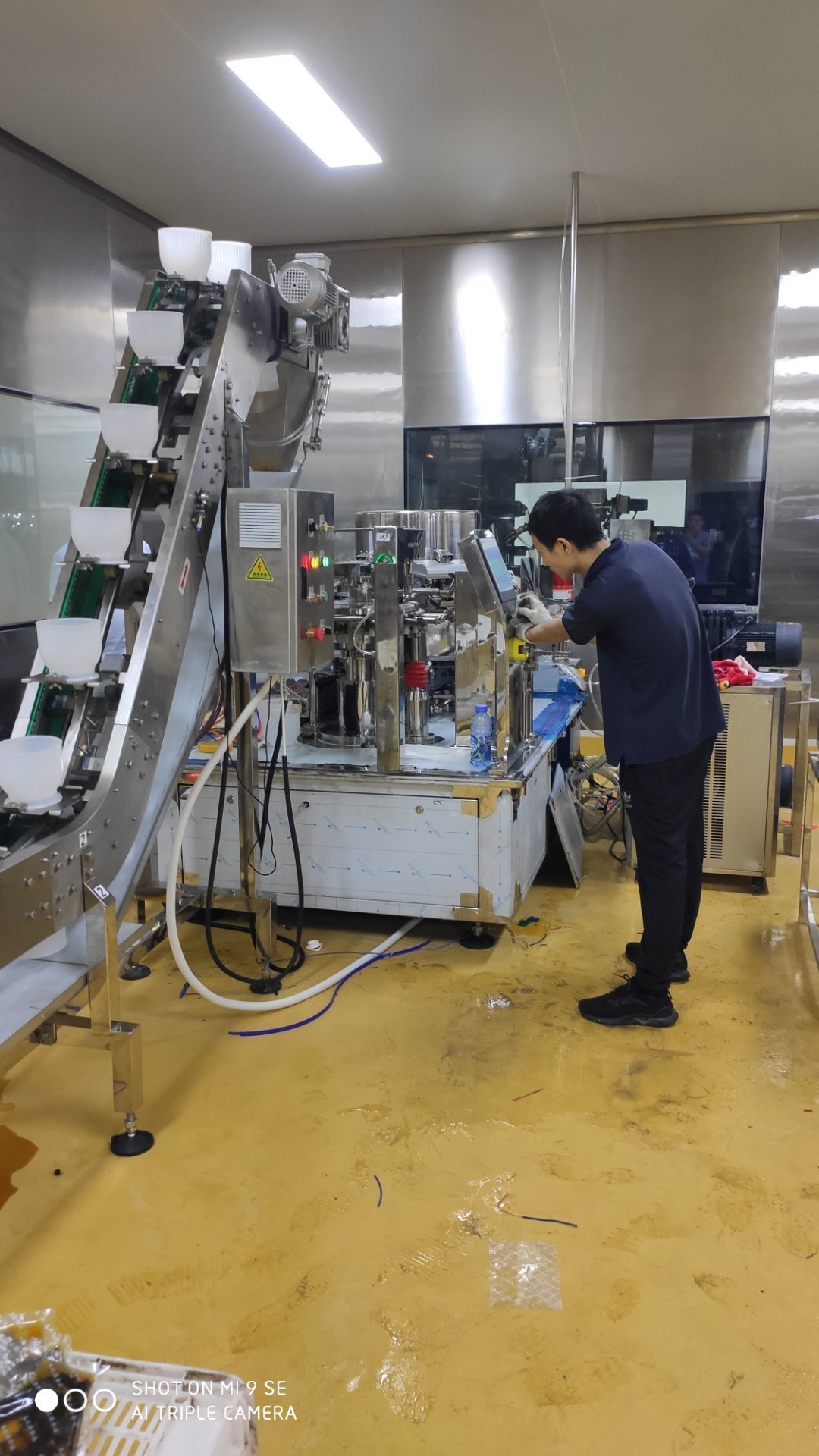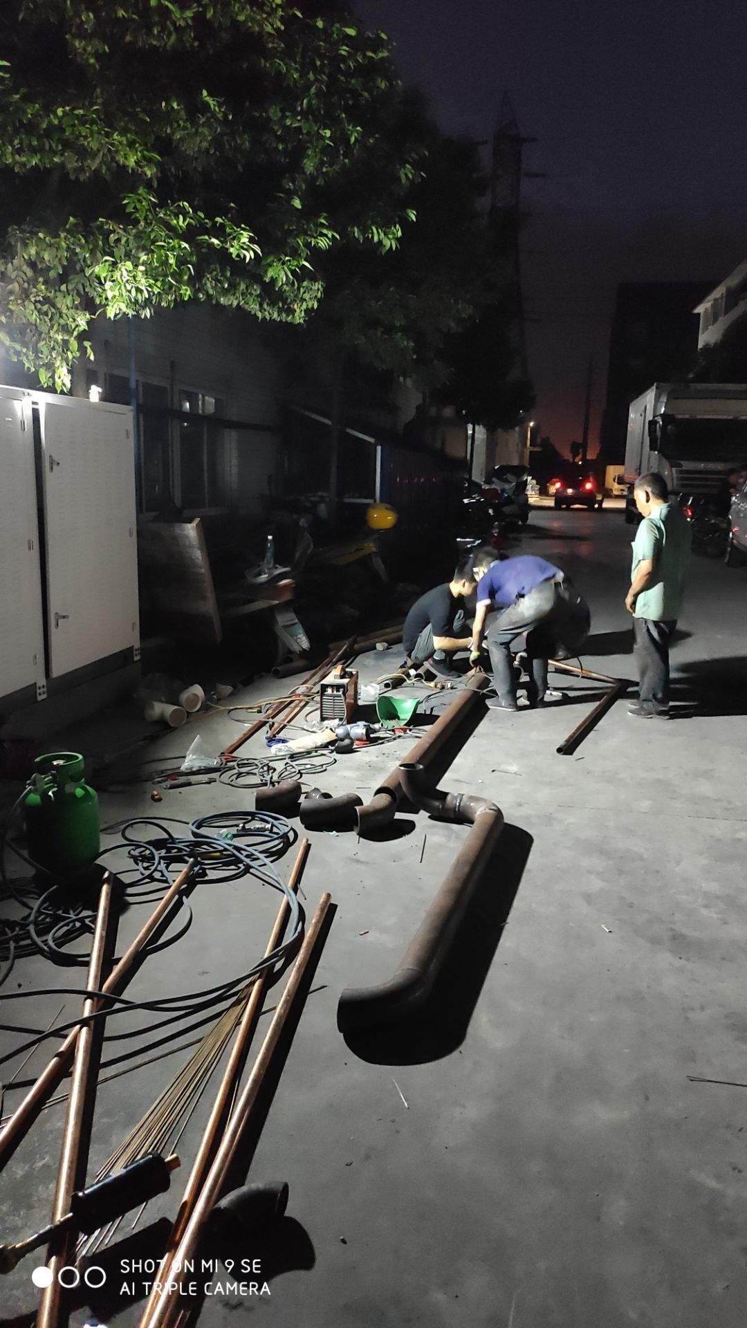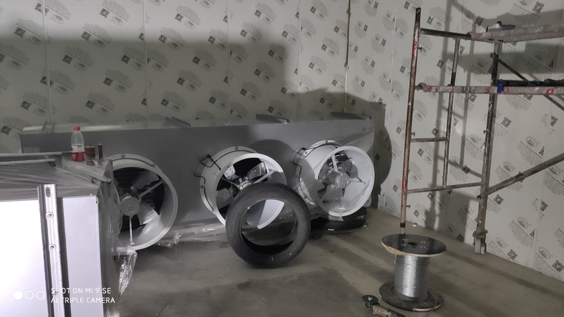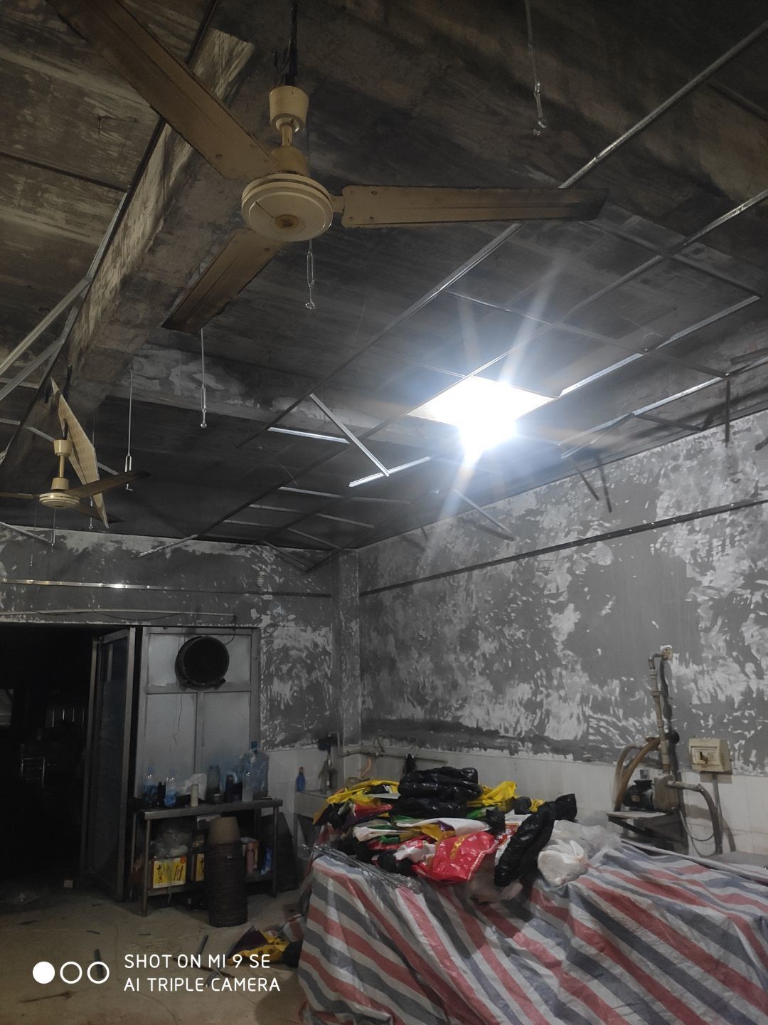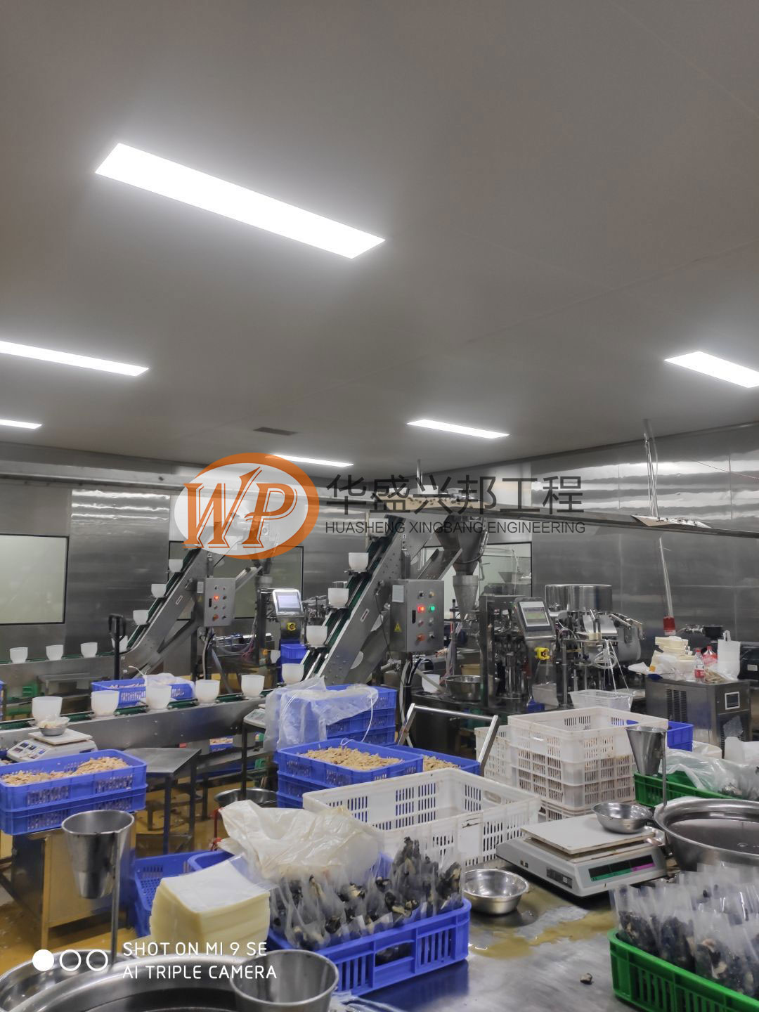 車間燈全部點亮,換氣扇開洞完成,機器設備安裝完成