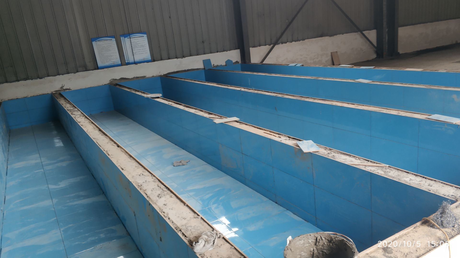 1.凍庫收邊收口完成百分之七十;2、凍庫門安裝完成百分之六十五; 3、生產車間地面鋪裝完成百分之七十; 4、生產車間排水溝貼磚完成。