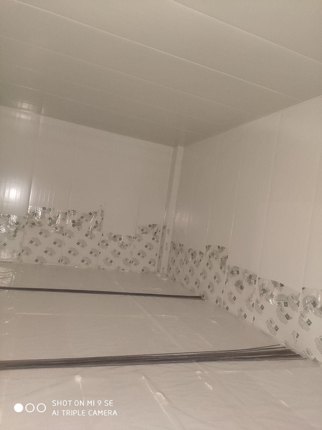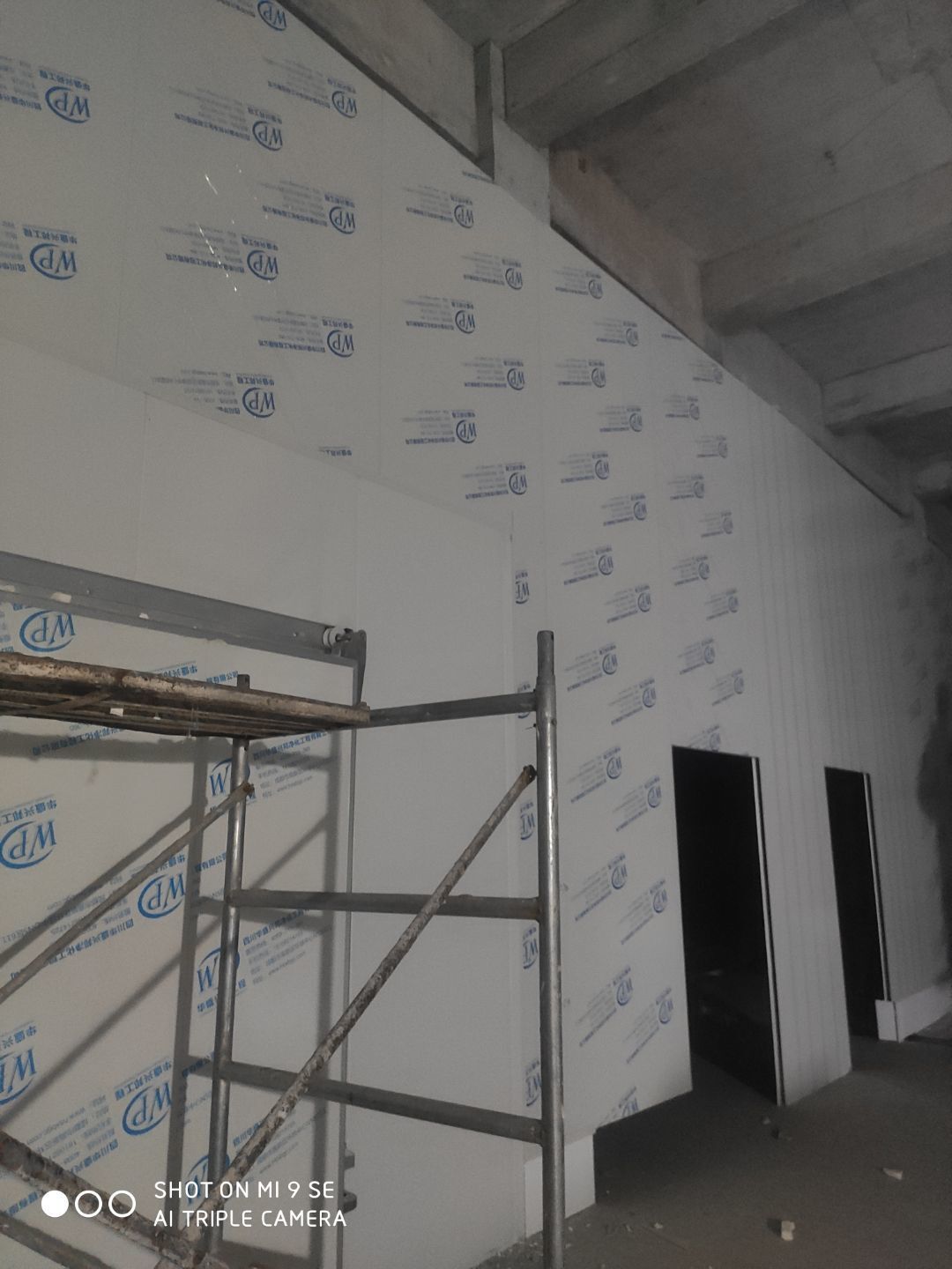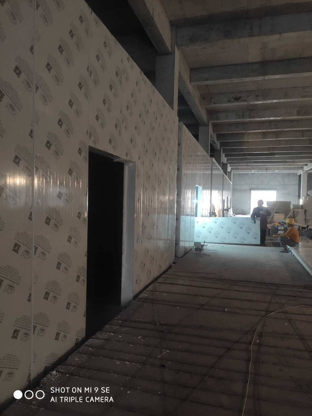 墻板頂板完成百分之九十 凍庫設備安裝完成 車間水電安裝已經開始 乳膠漆進場
