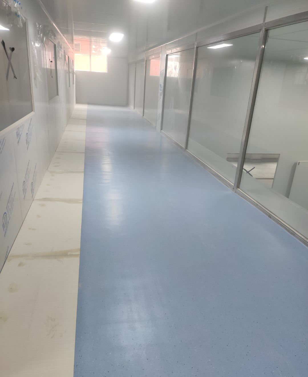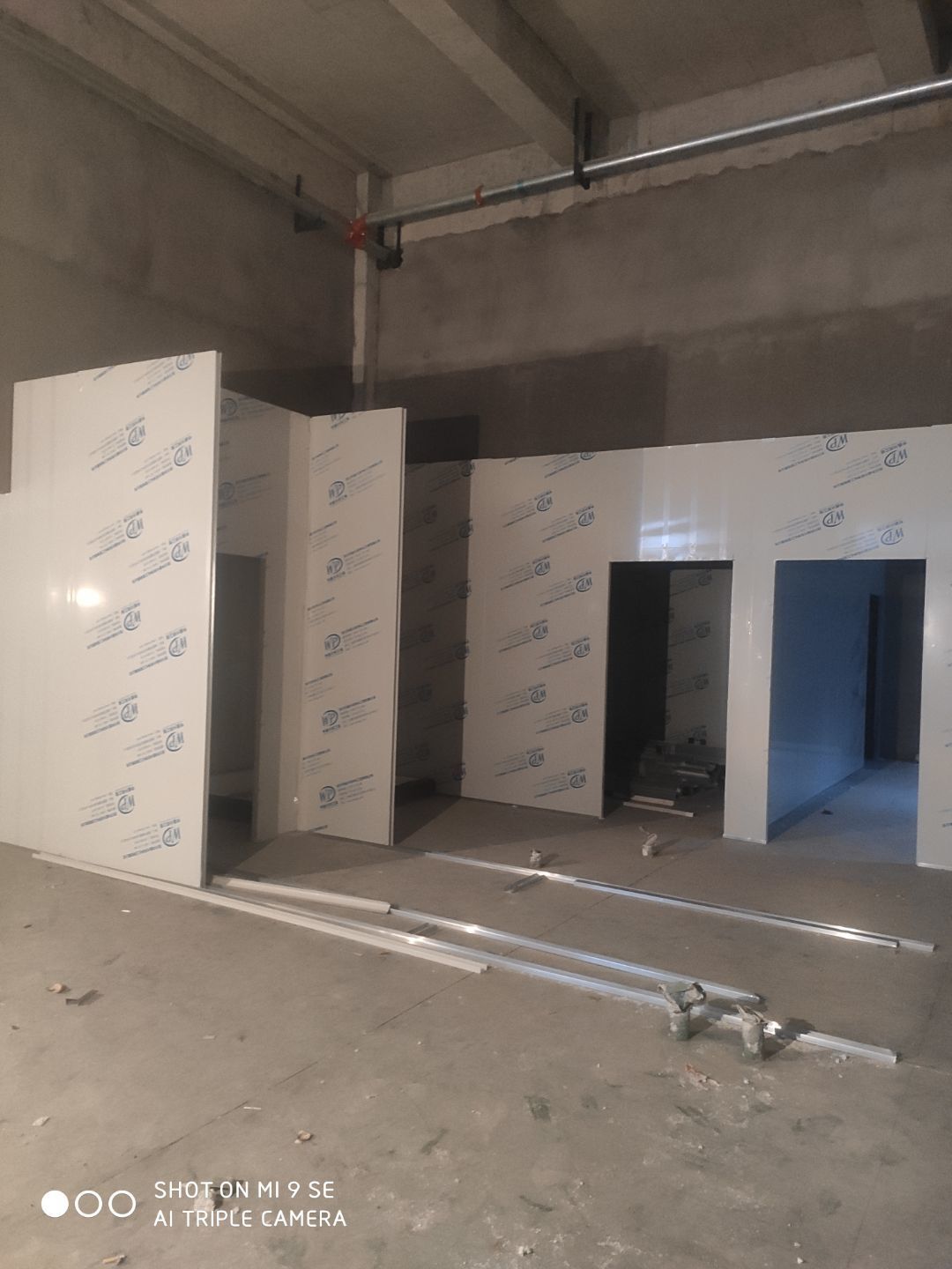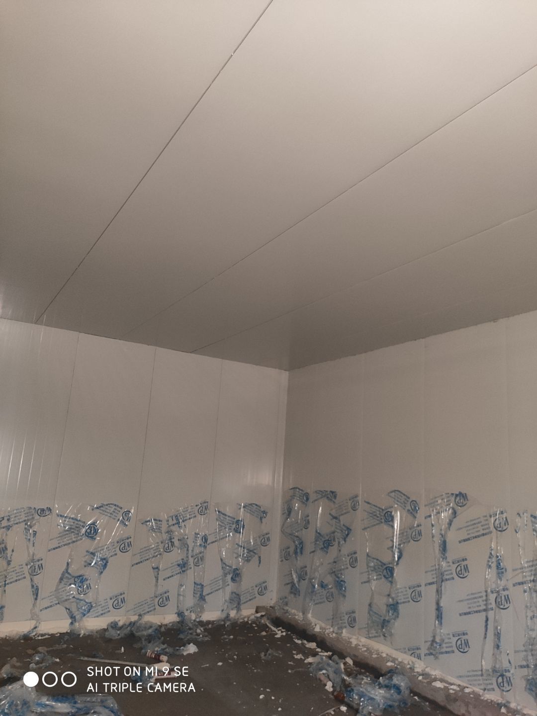墻板頂板完成百分之九十 凍庫設備安裝完成 車間水電安裝已經開始 乳膠漆進場