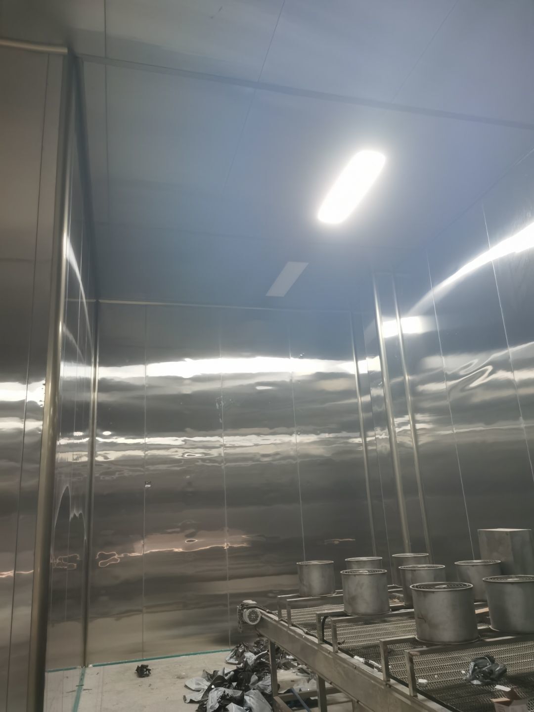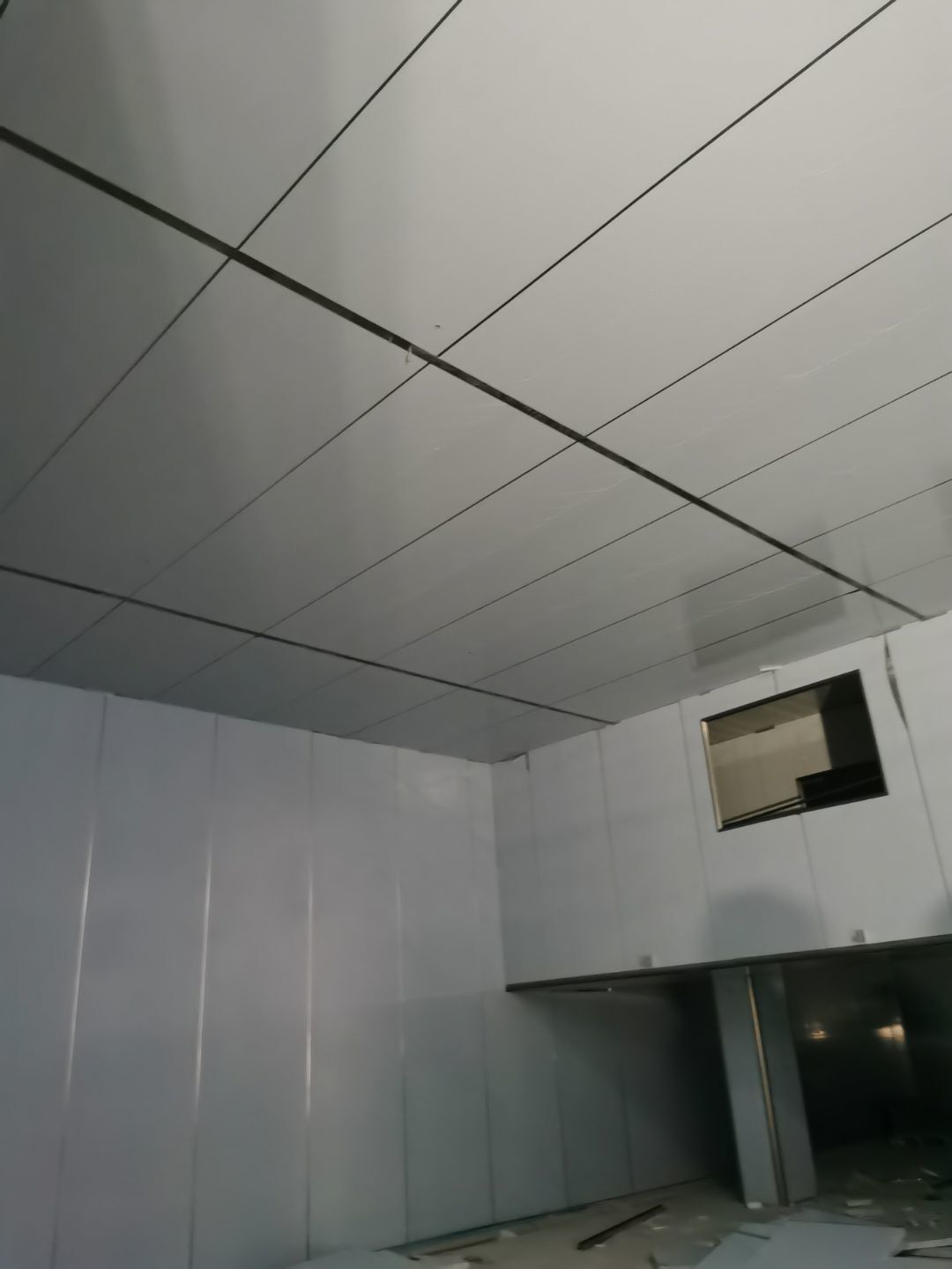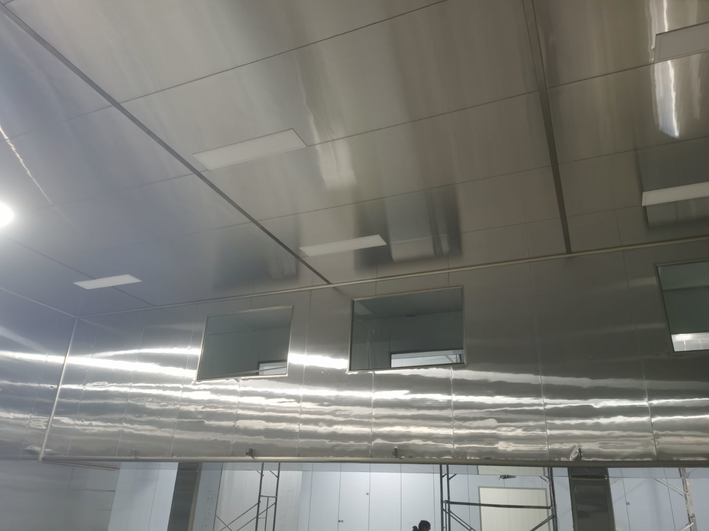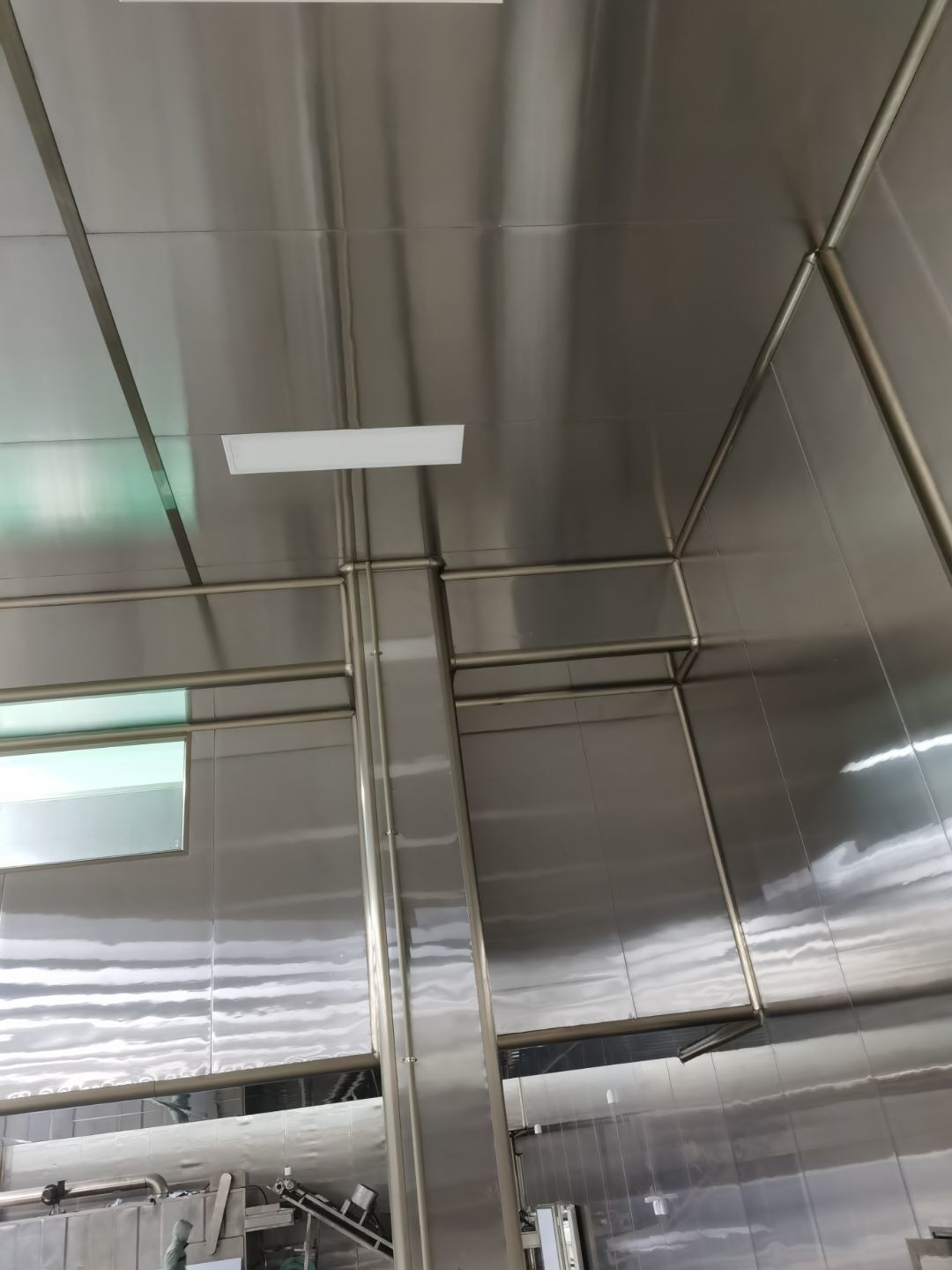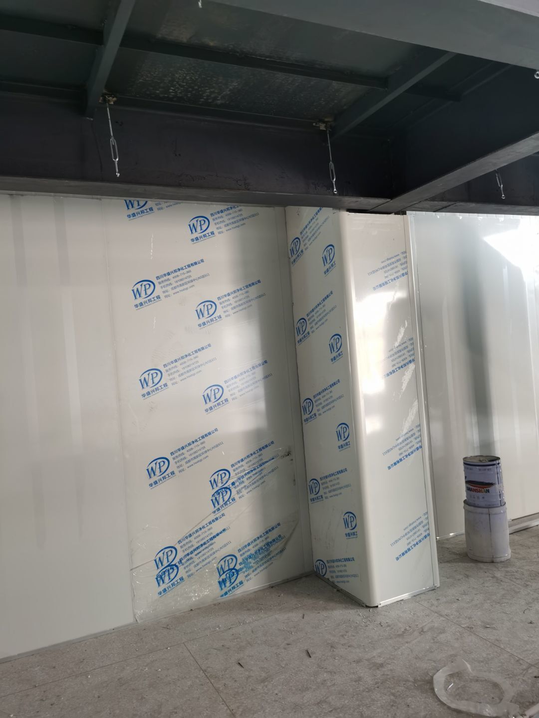 1、鋼接構完成70%;2、凍庫完成100%;3、彩鋼板開始立墻板