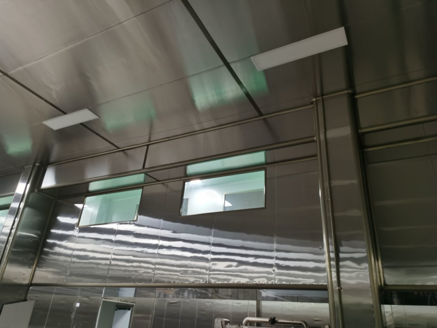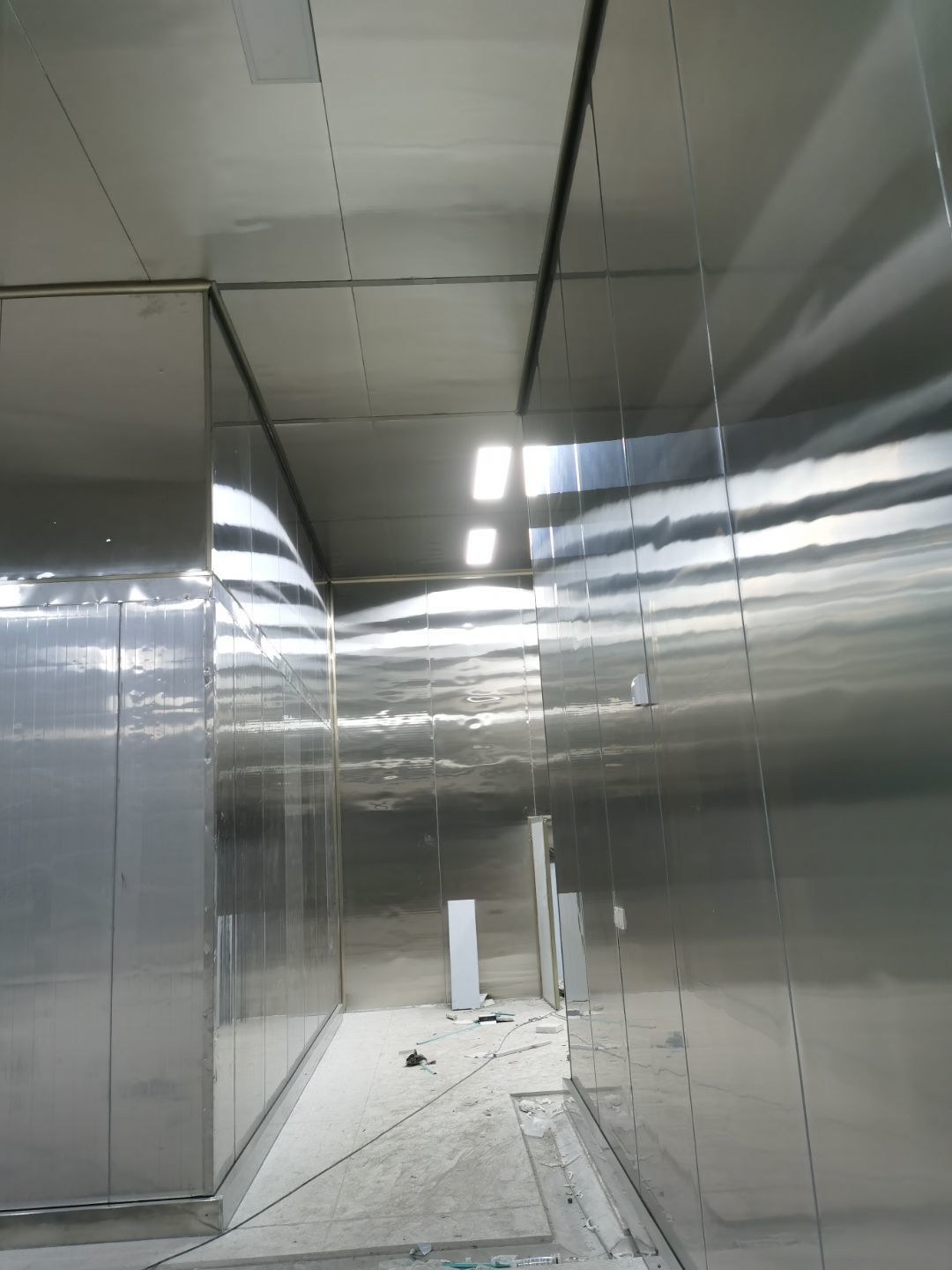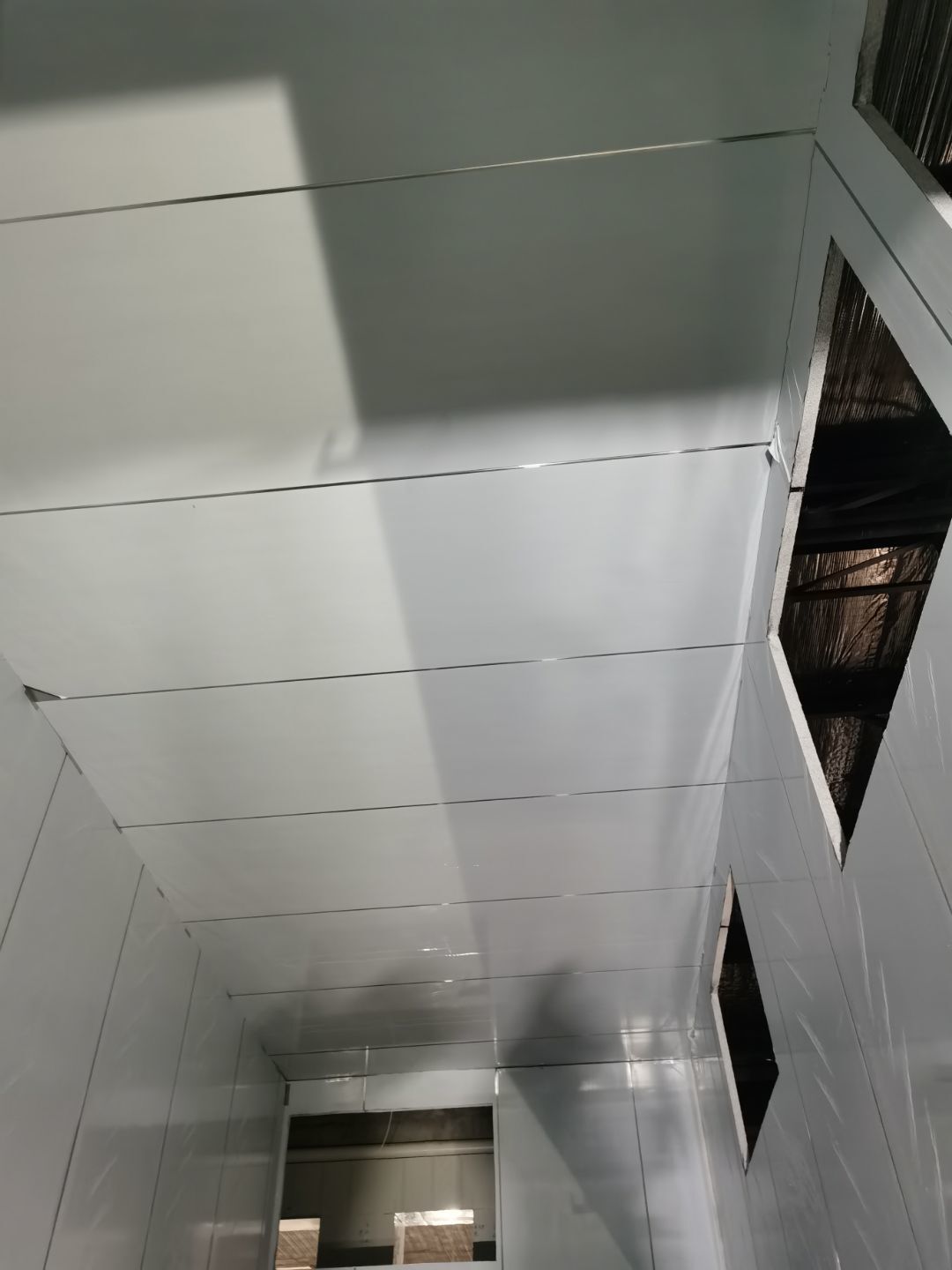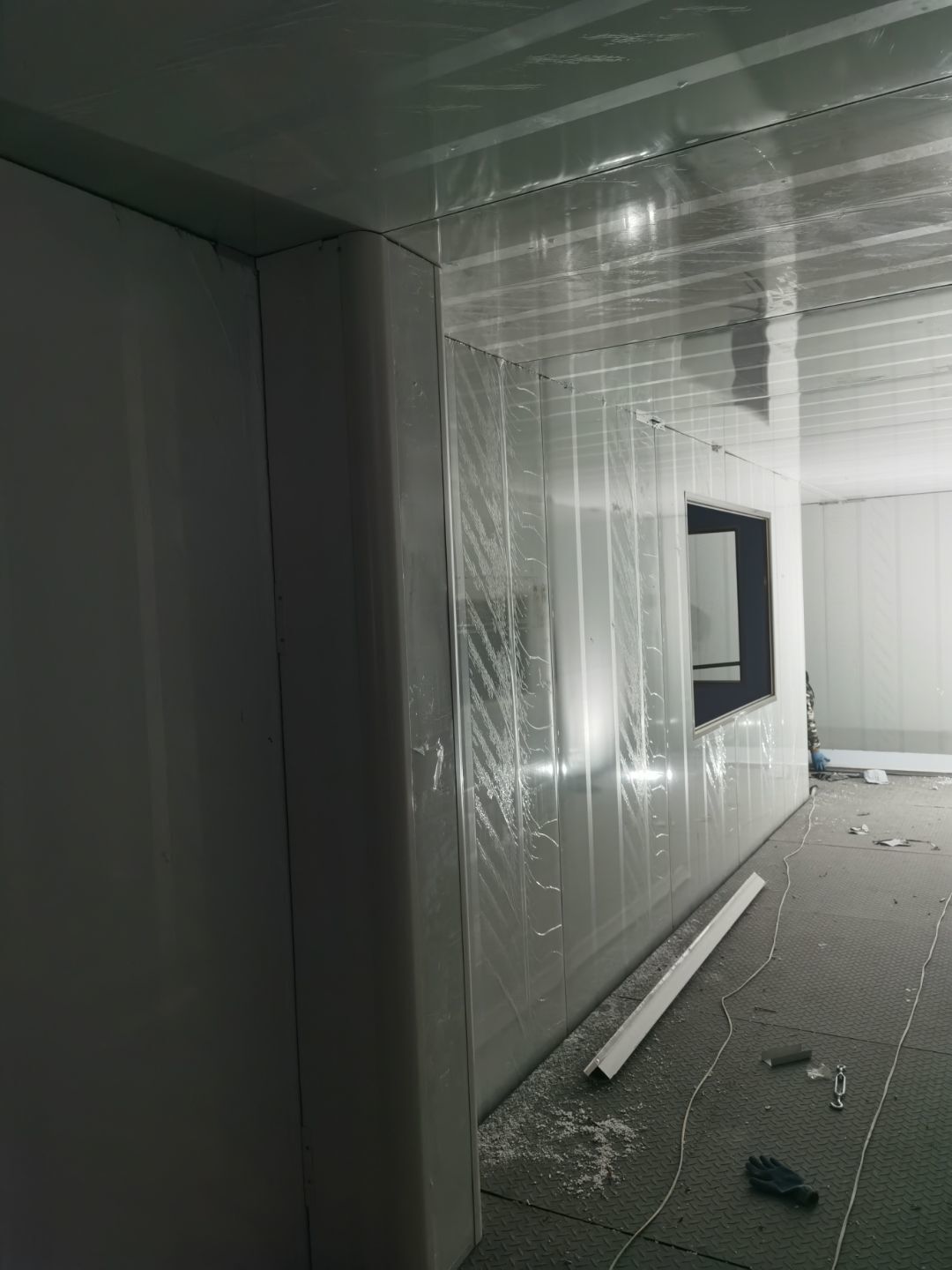 1、鋼接構完成70%;2、凍庫完成100%;3、彩鋼板開始立墻板