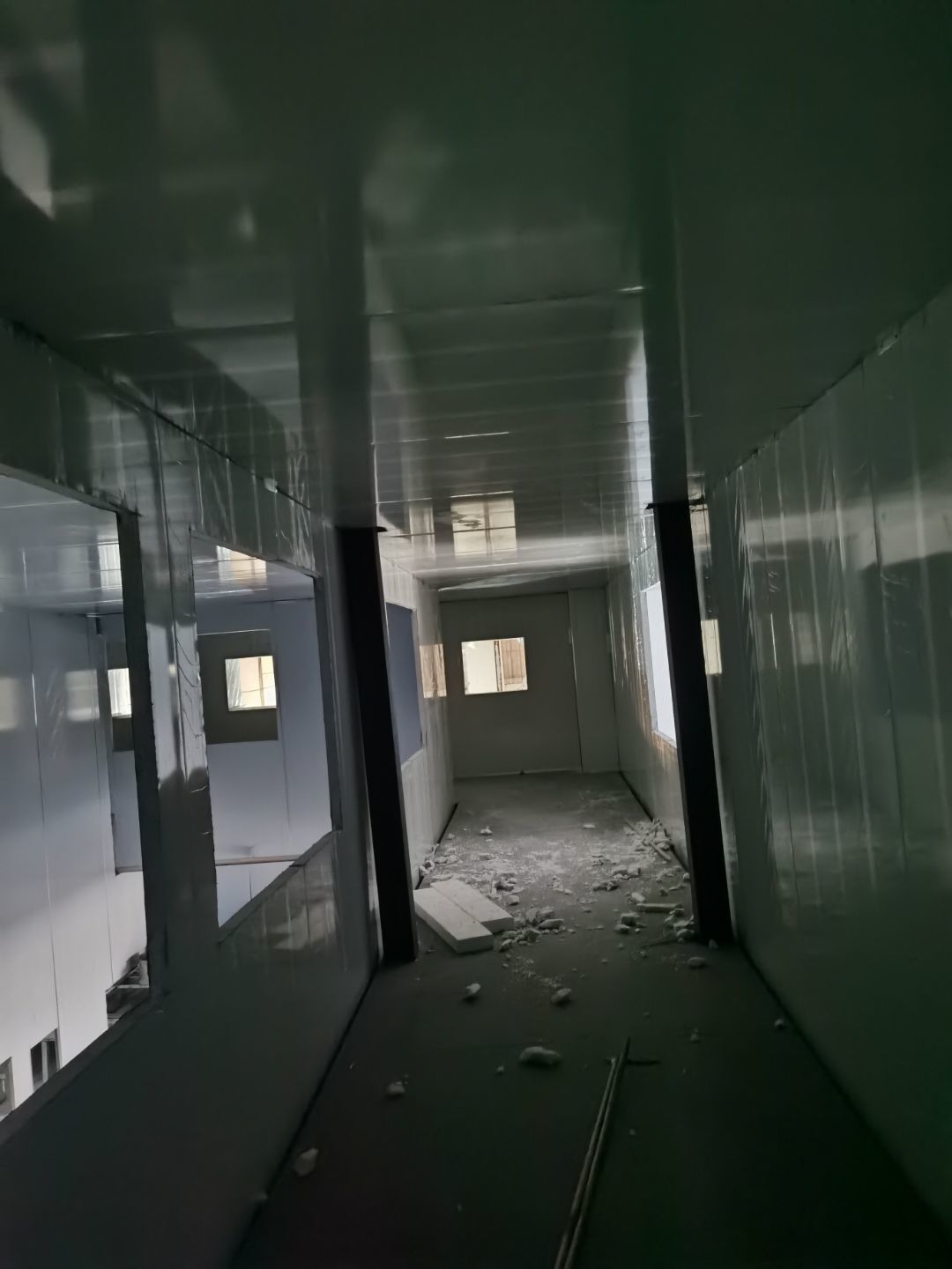 ①鋼接構完成100%②凍庫完成100%③彩鋼墻板完成100%,④水丶電完成10%、建渣清理