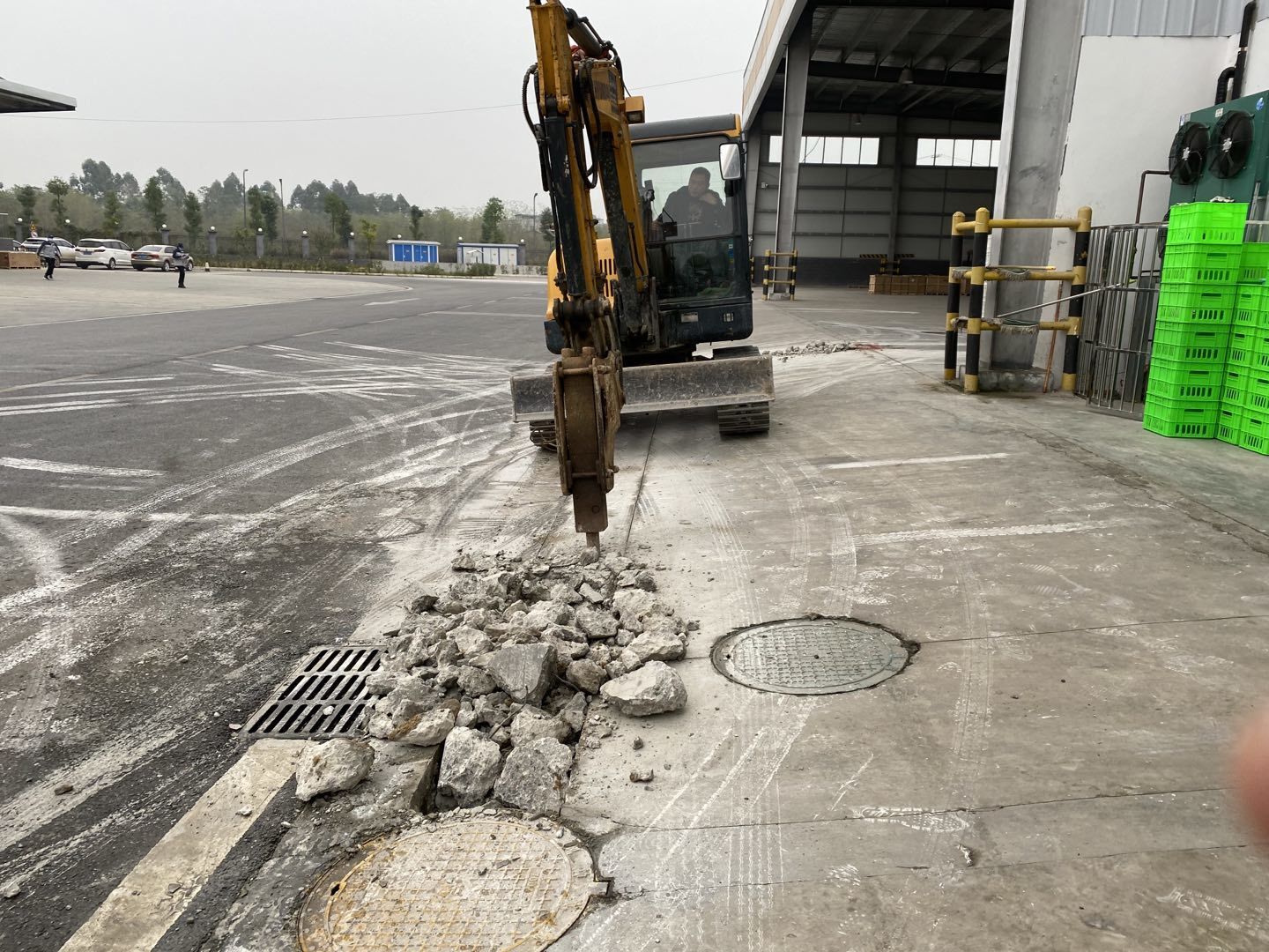1.排水管道開(kāi)挖破碎80米。 2.吊頂鋼繩安裝完成百分之40.