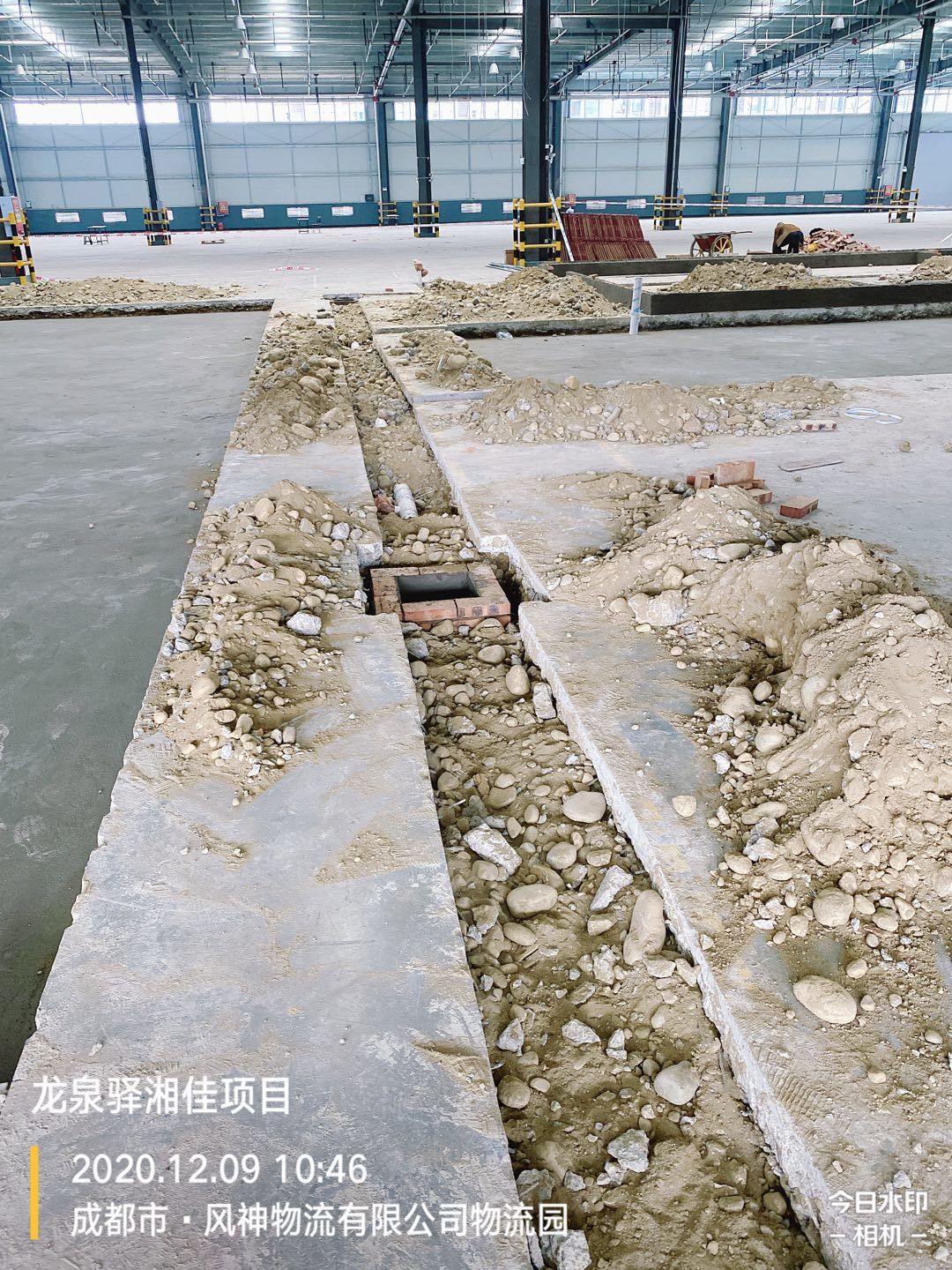 車間擋水墻瓷磚鋪貼完成70%,排水管埋設(shè)、土方回填完成,剩余土方清運(yùn)離場(chǎng)完成60%。