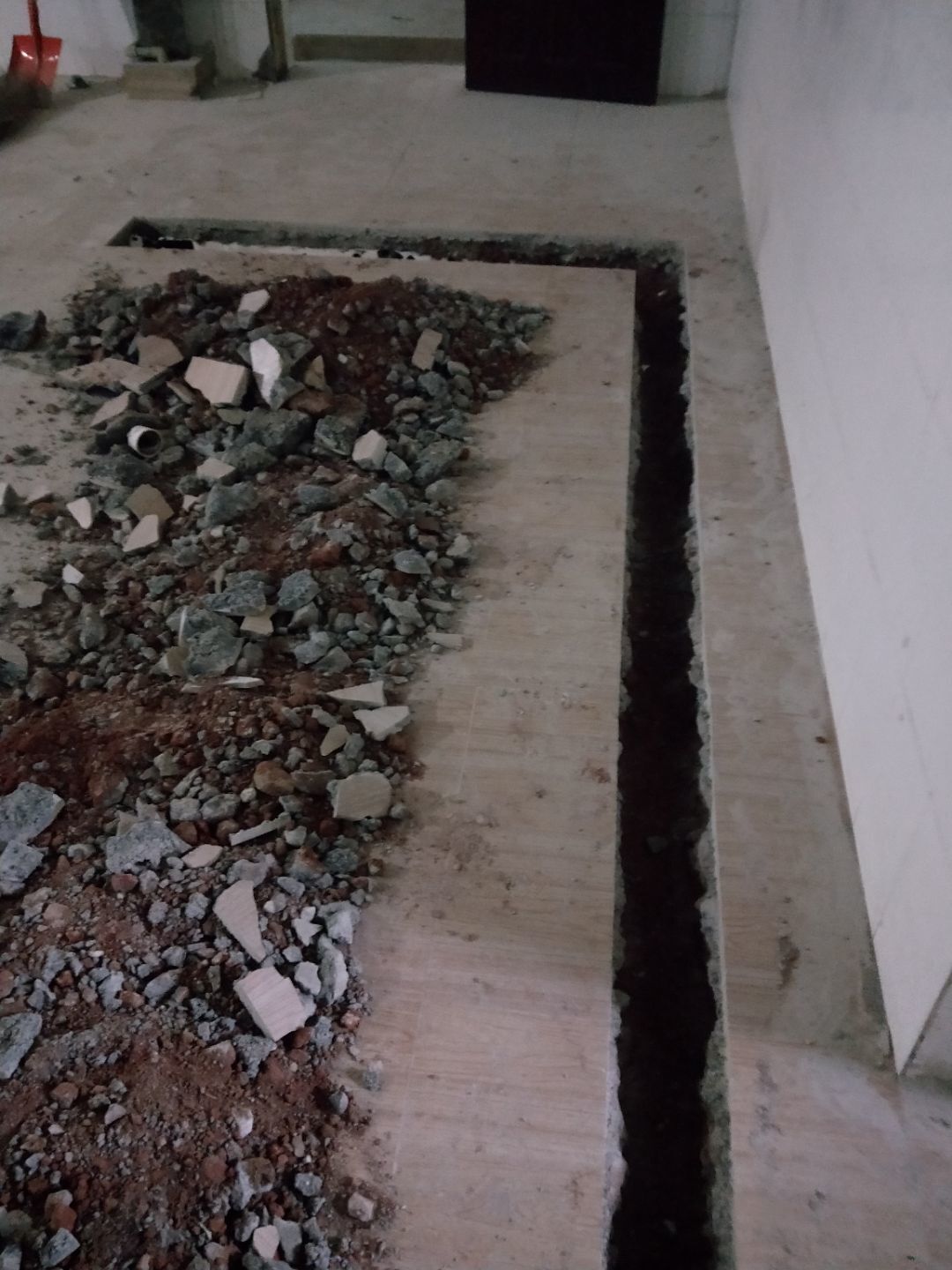 挖排水溝排水點完成,土建墻開門洞完成20%