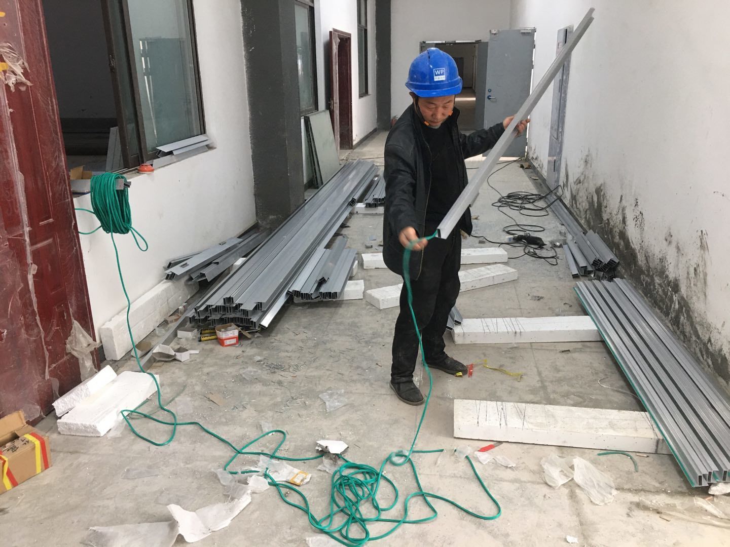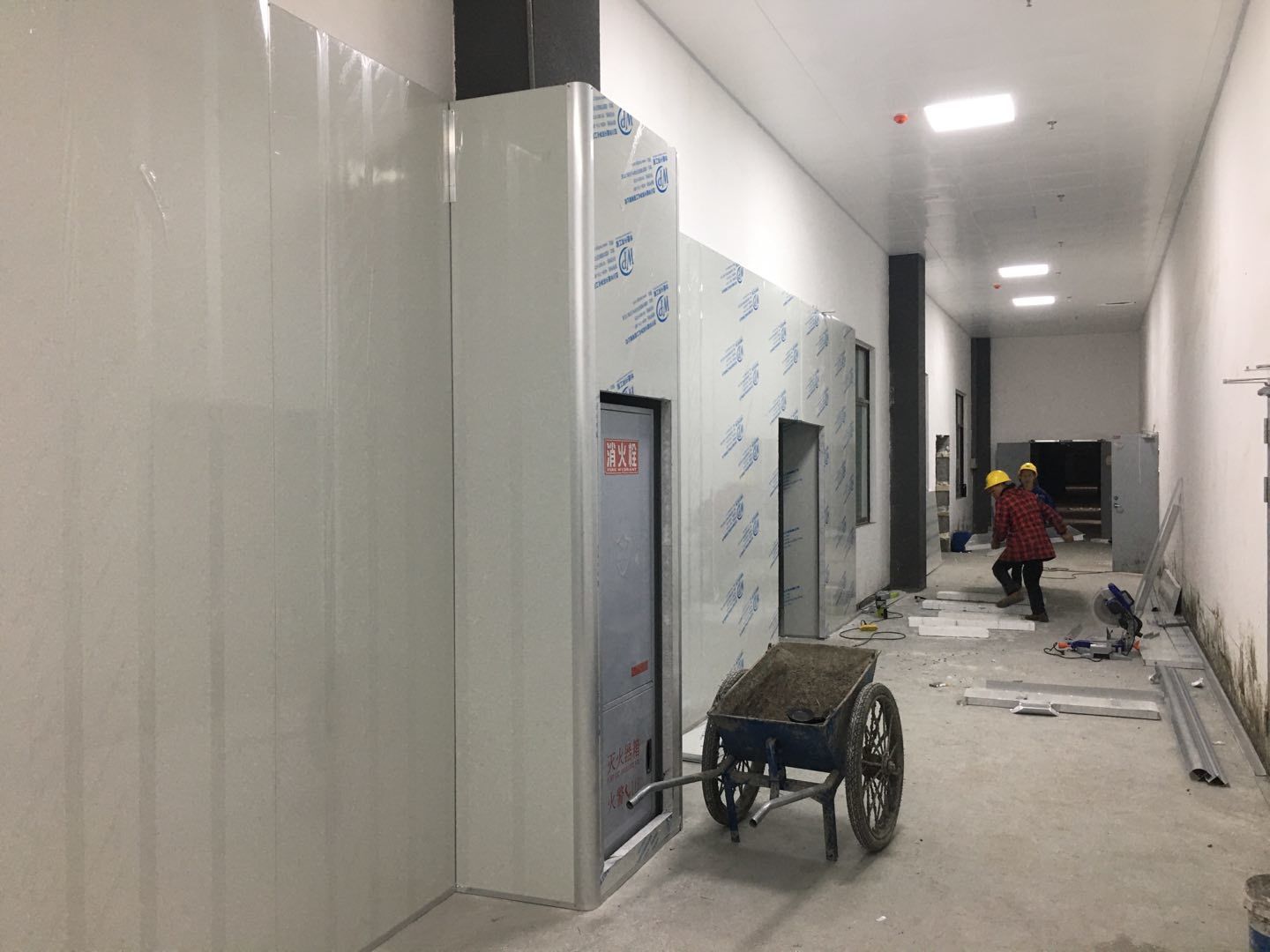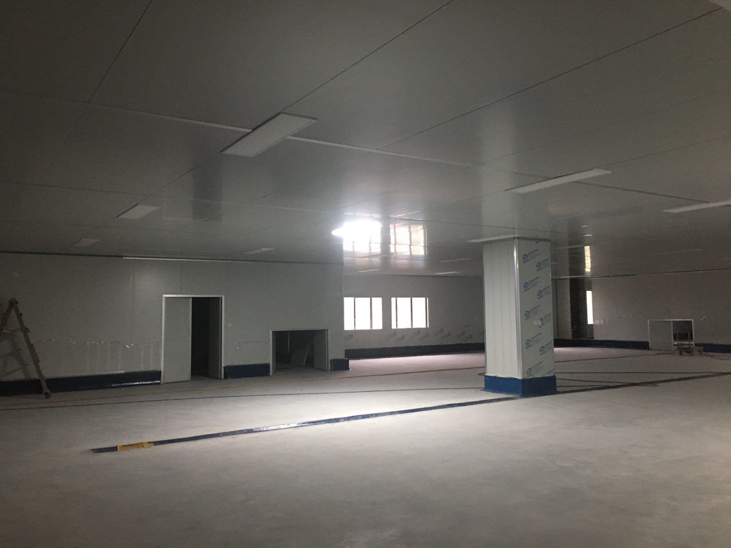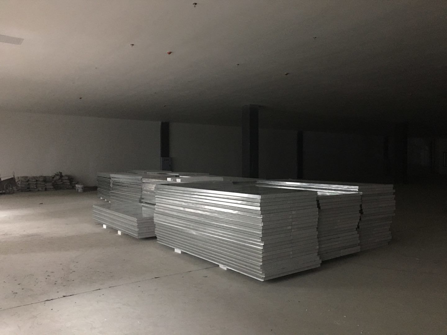 1.簽證彩板內包材庫未封頂,門窗已投合,明日開始全面開預留孔2.空調班組、風盤絲桿支架固定,管道布置焊接。3.水電班組-燈具安裝,配線配管。全部燈具安裝完成。