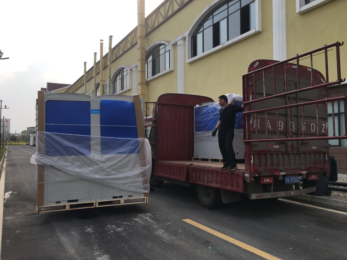 1:彩板班組~收尾工作進度30%。2:空調班組~管道安裝完成,風機已吊裝2臺,主機配管。3:水電班組-布線配管。整體進度約80%。