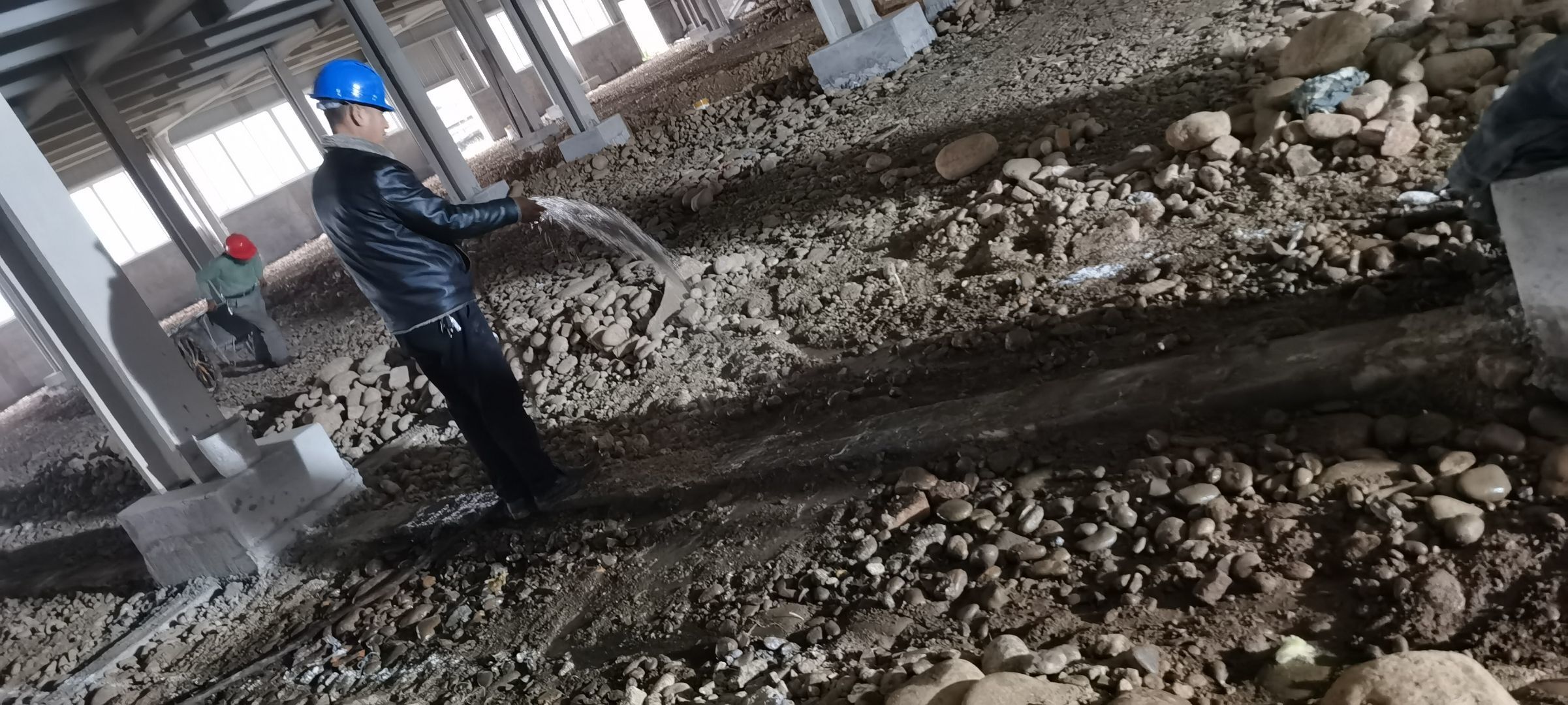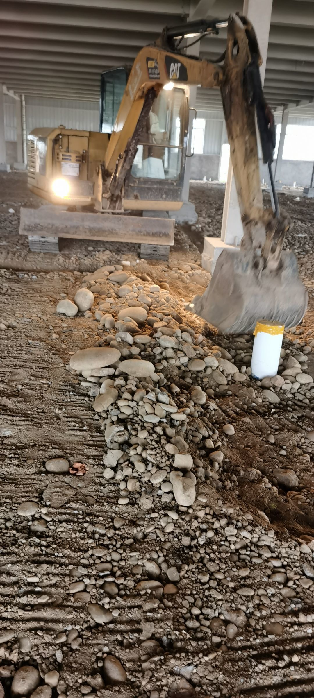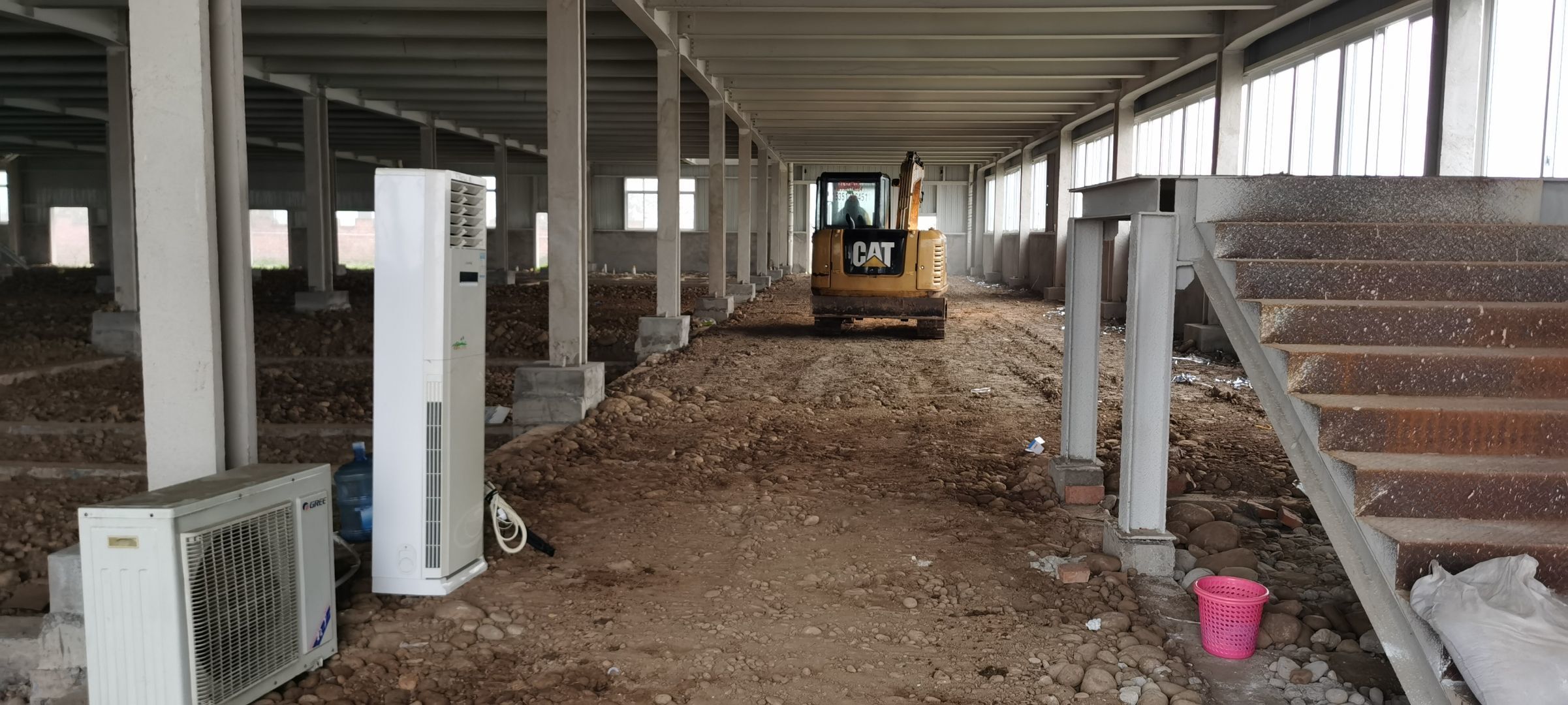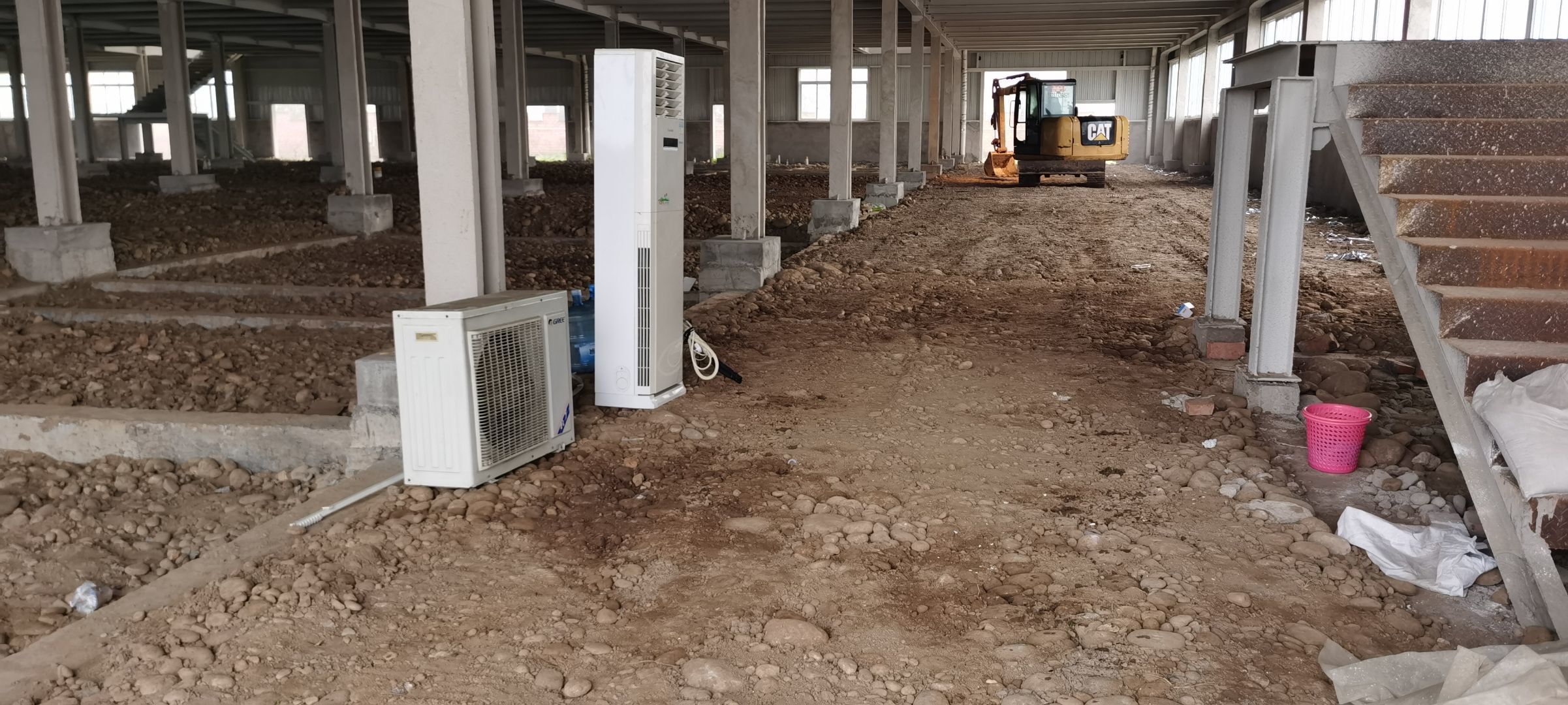現(xiàn)場挖機壓地面,排水溝開挖