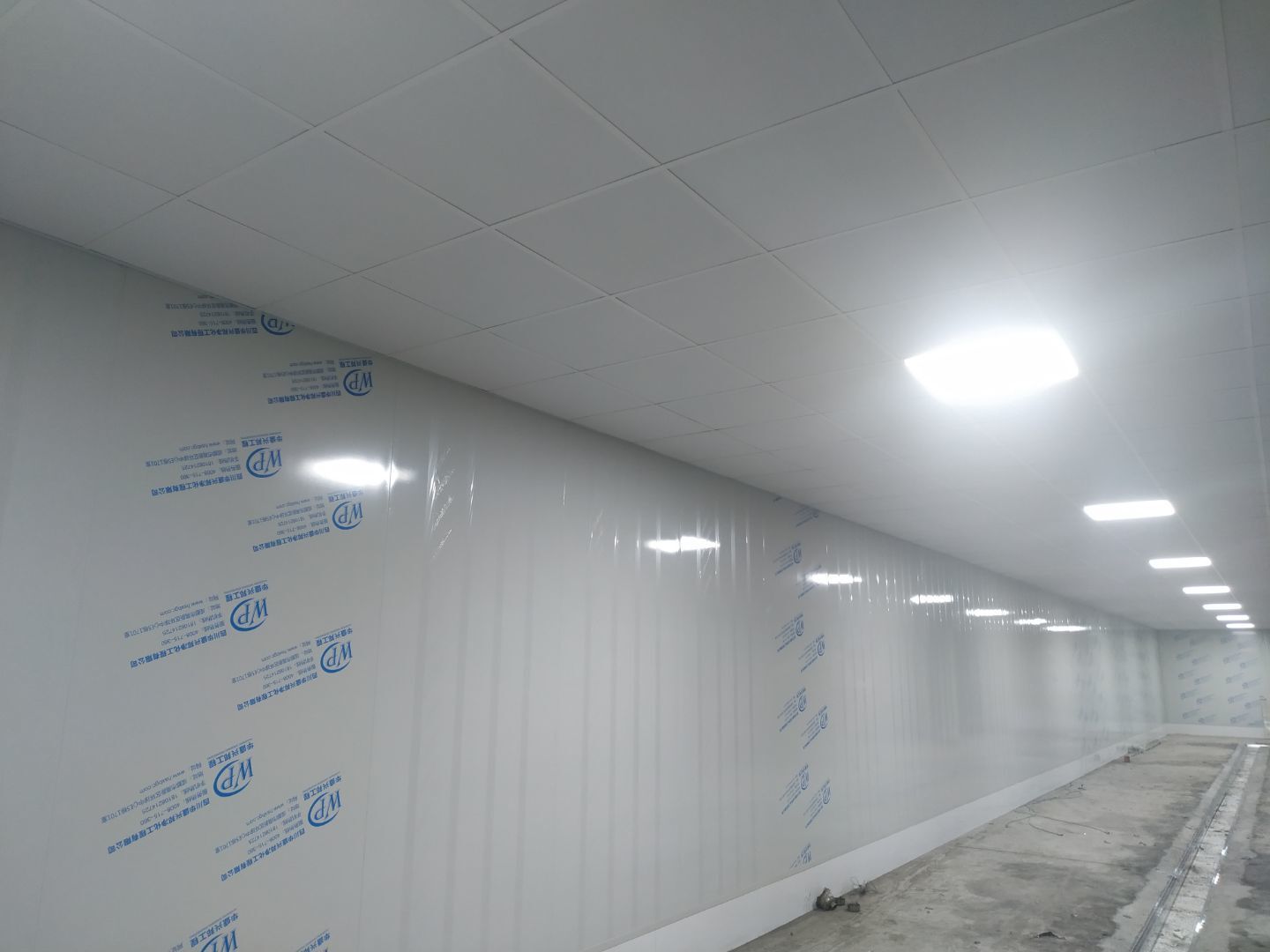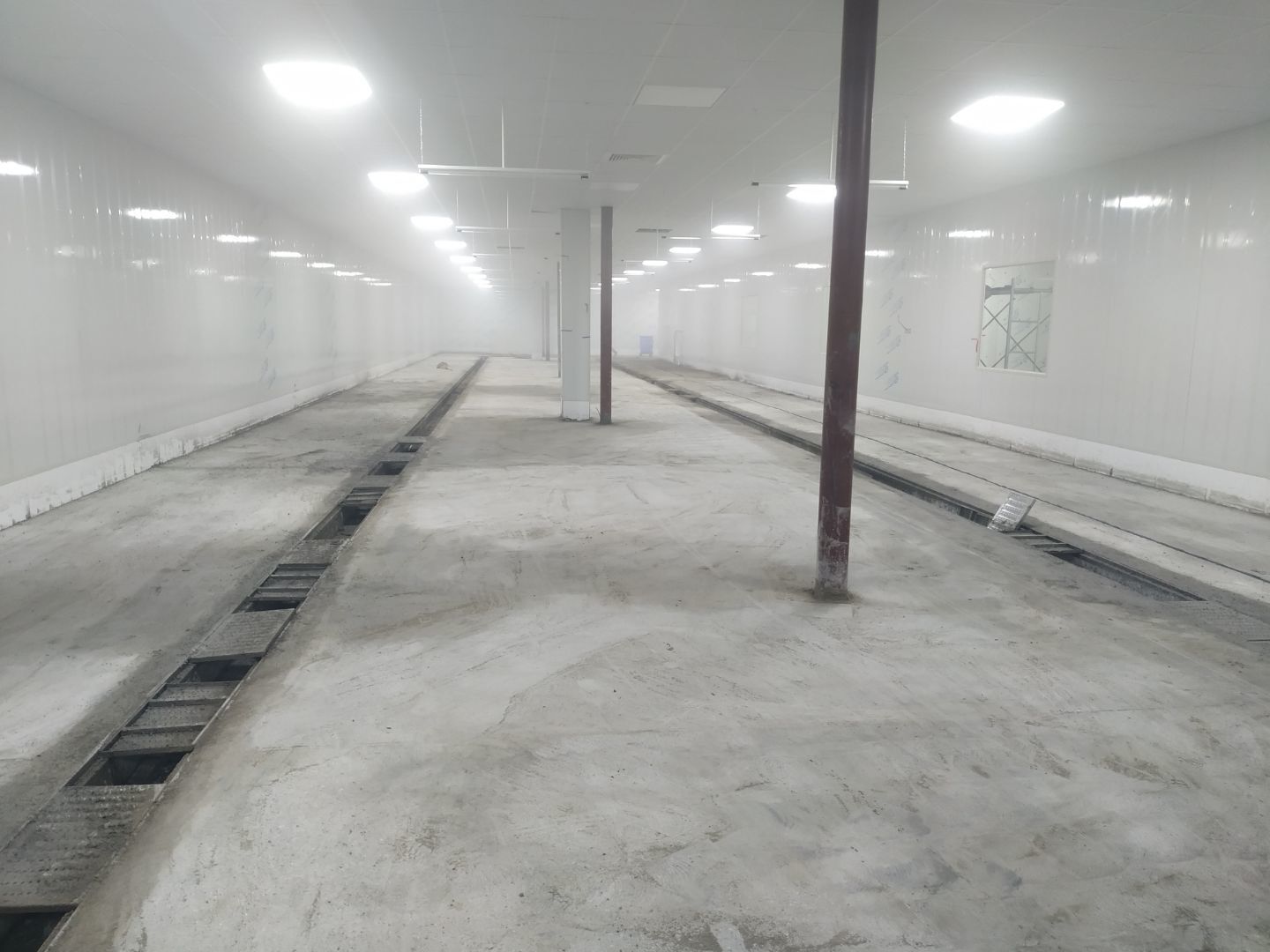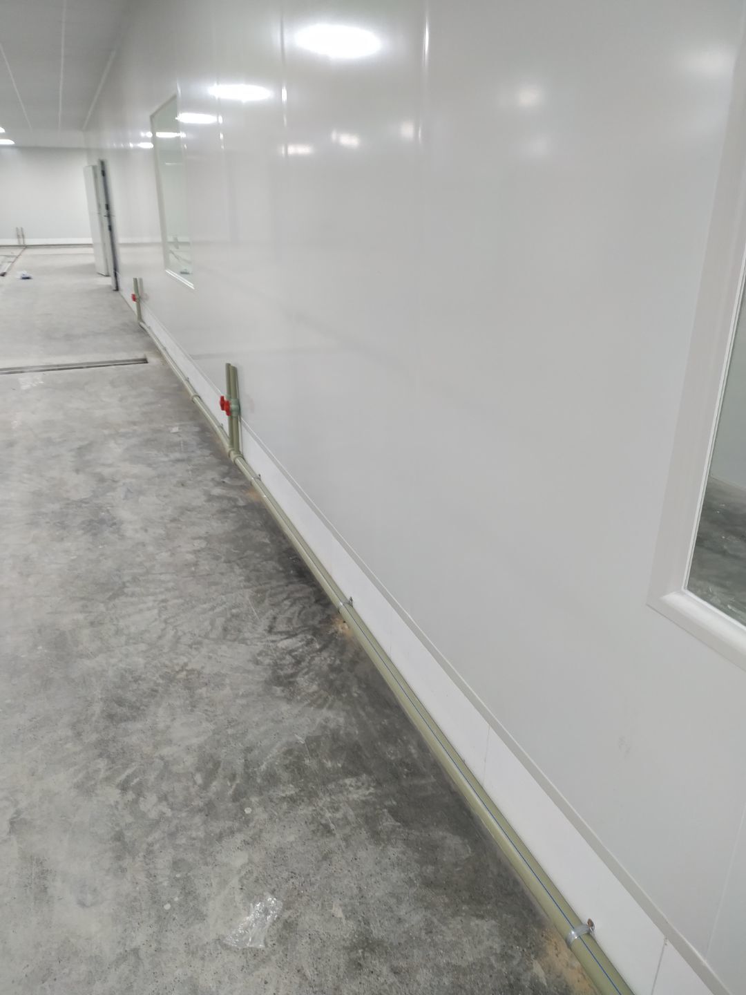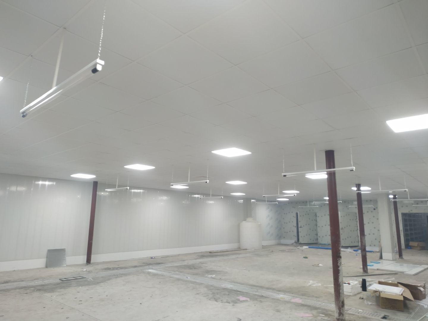 1、前處理間固化和拋光完成,滾揉間地面初磨完成,速凍庫旁邊過道門加大完成,水化霜儲水桶移位完成;2、燈具安裝完成95%,配管穿線完成80%。