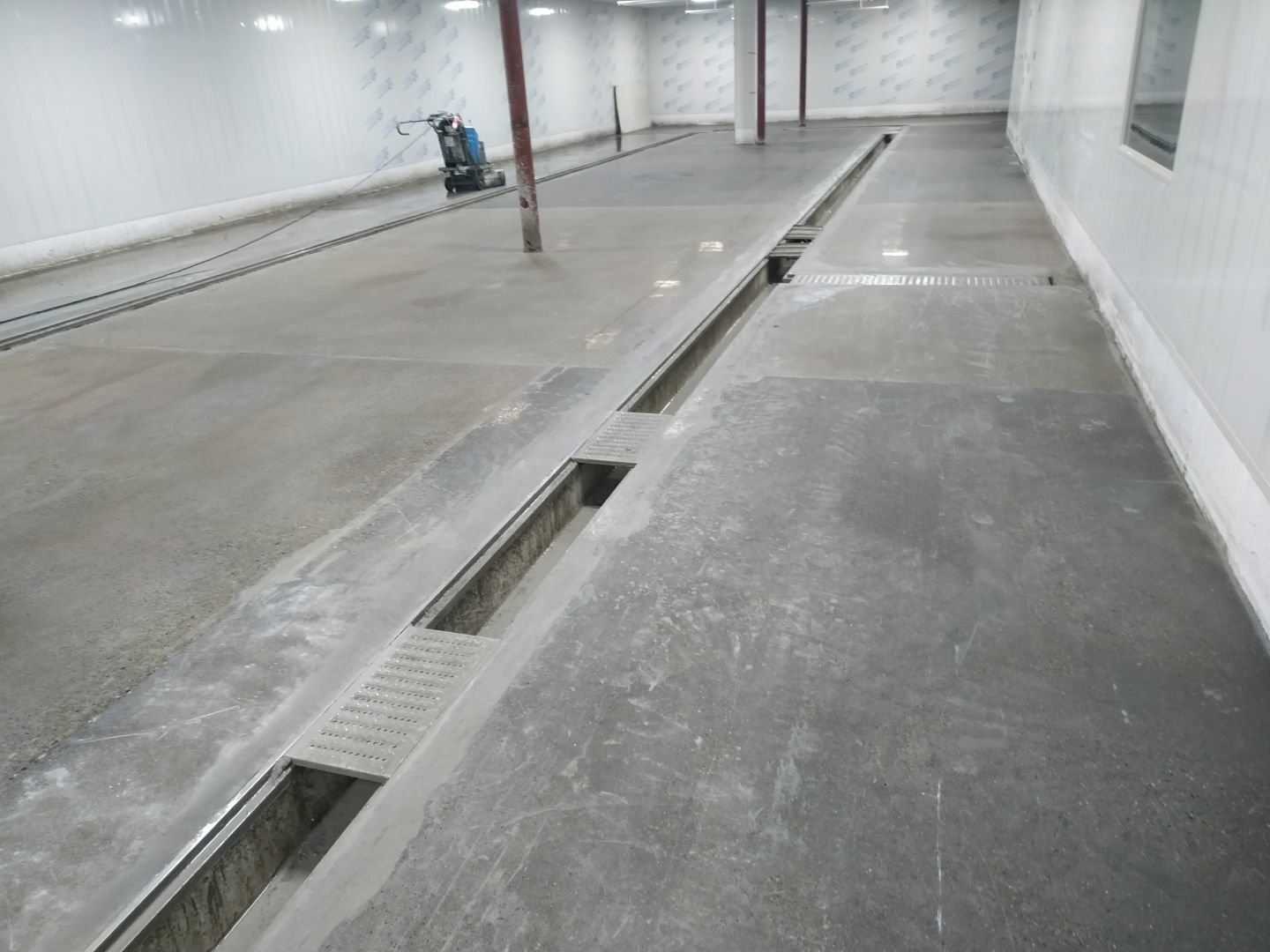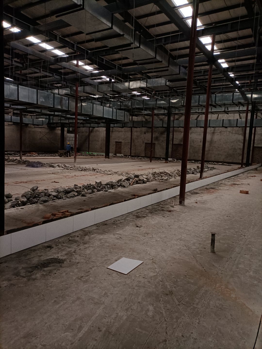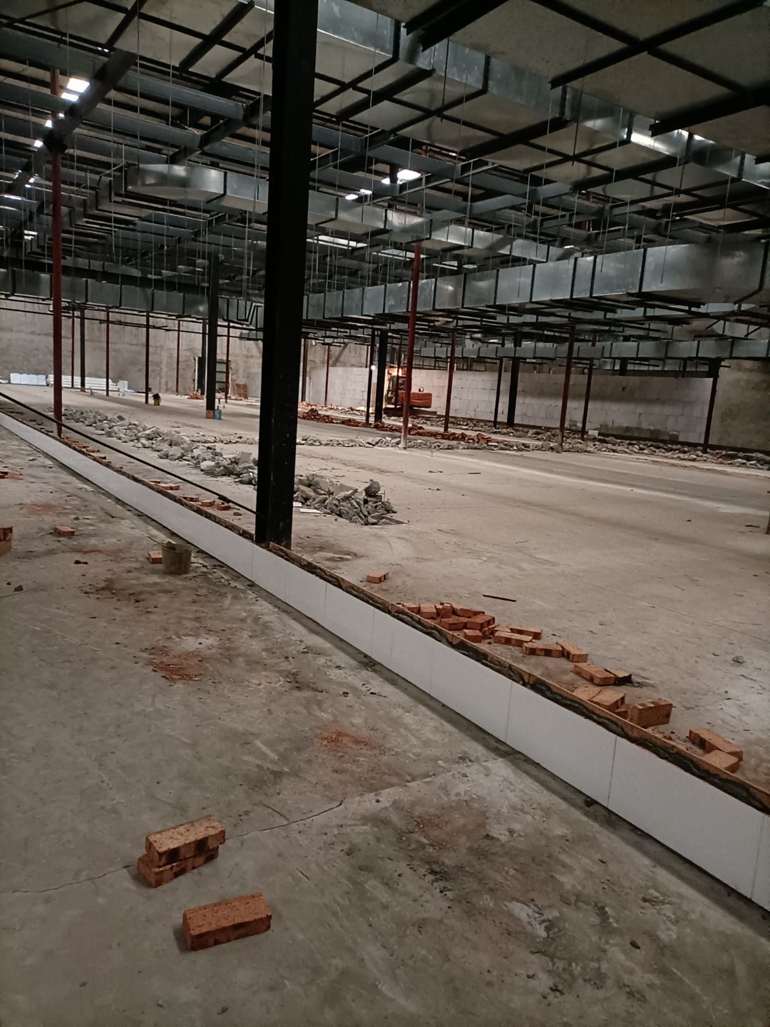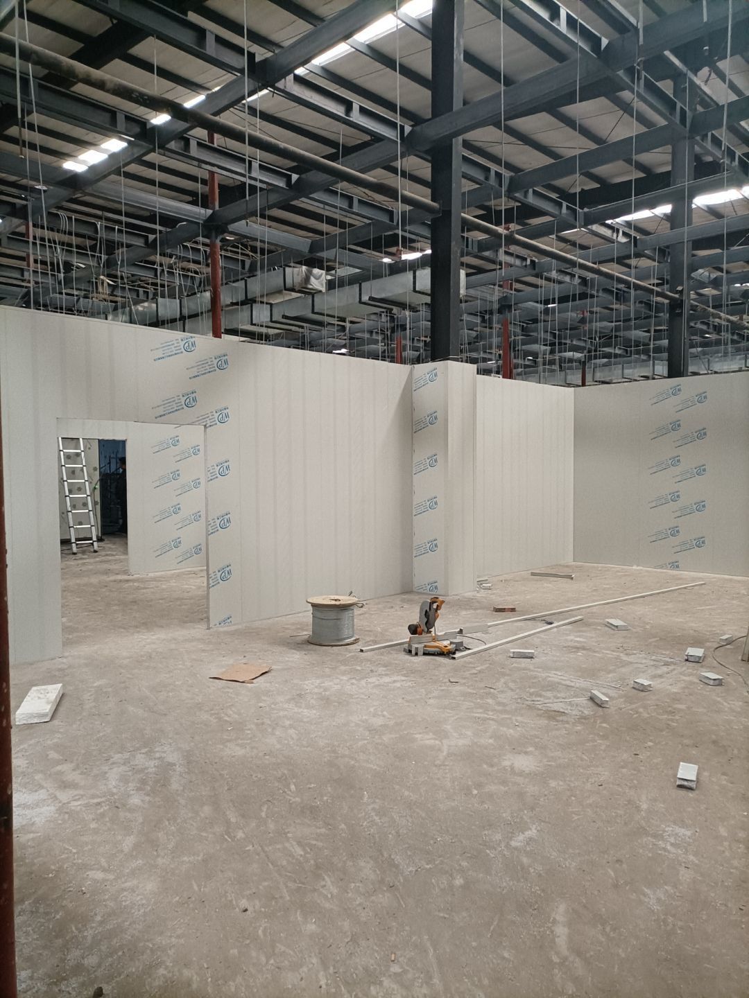 1、前處理間固化和拋光完成,滾揉間地面初磨完成,速凍庫旁邊過道門加大完成,水化霜儲水桶移位完成;2、燈具安裝完成95%,配管穿線完成80%。