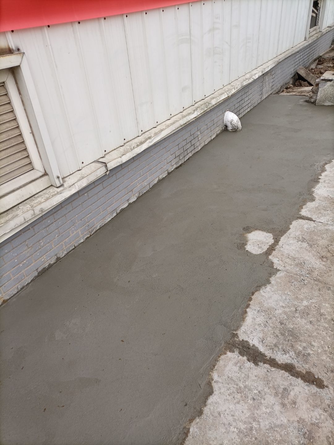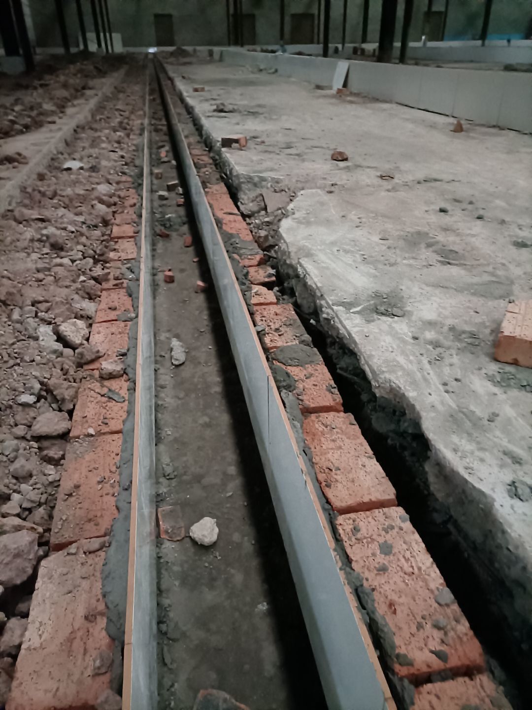 1:增項車流卸貨通道、入沉淀池排水管破除完成100% ;2:排水溝砌磚完成100%、貼磚完成40%; 3:彩鋼板到場。