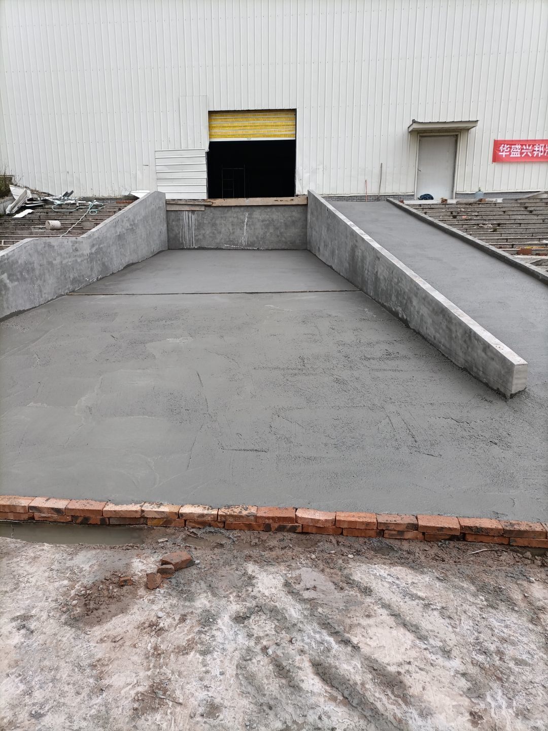 1:不銹鋼水篦子安裝完成,卸貨平臺鋼筋水篦子安裝完成;2:卷簾門封邊處理完成,沉淀池蓋板安裝完成;3:給水安裝完成。