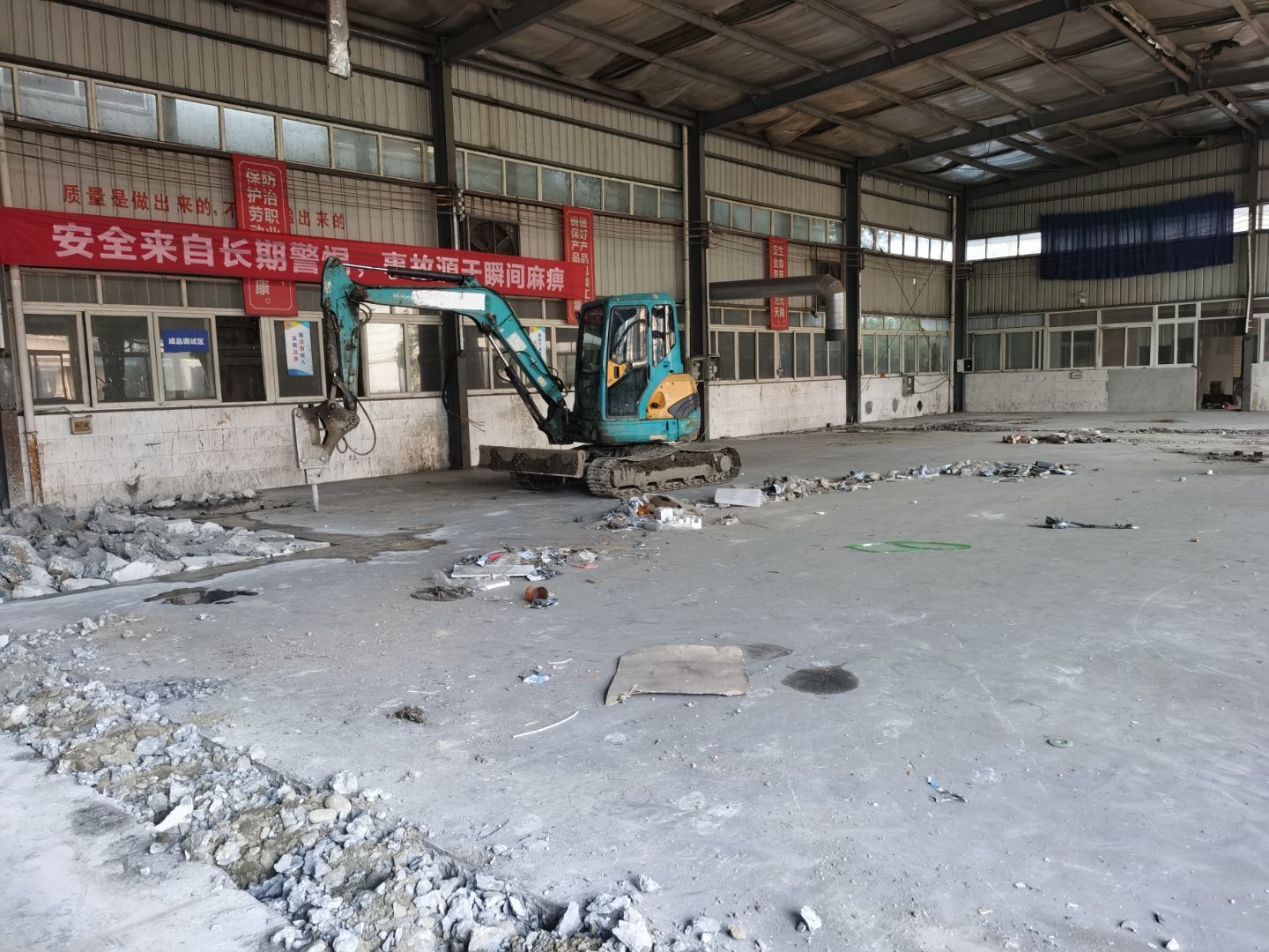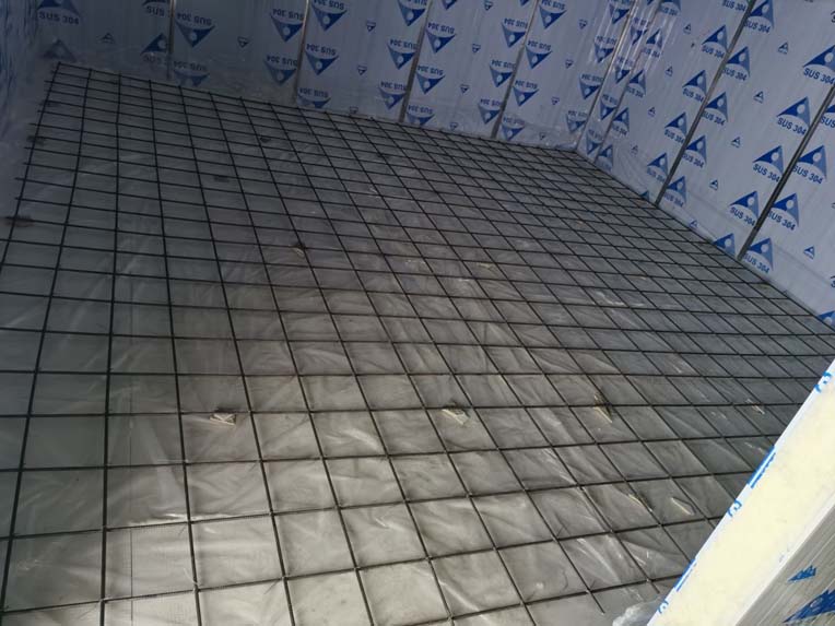 1、排水溝及凍庫切割完成100% 2、 破碎完成100% 3、 吊頂鋼繩下料完成100% 4、 排水溝接管完成100% 5. 排水溝回填并發水完成100% 6. 彩鋼墻板完成20% 7. 土建活完成30% 8, C型鋼加固完成20%
