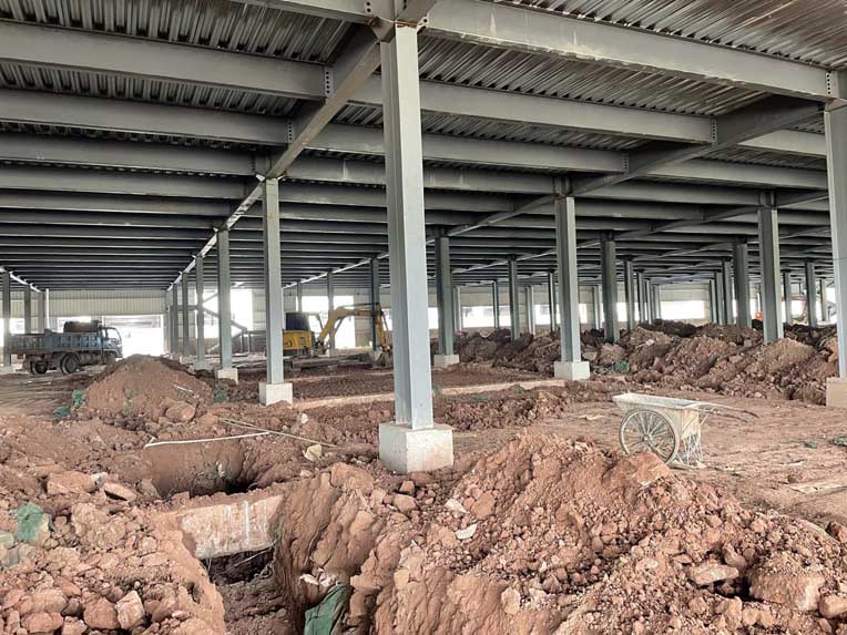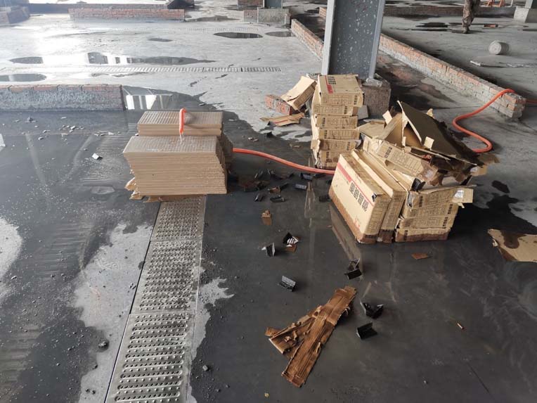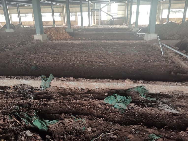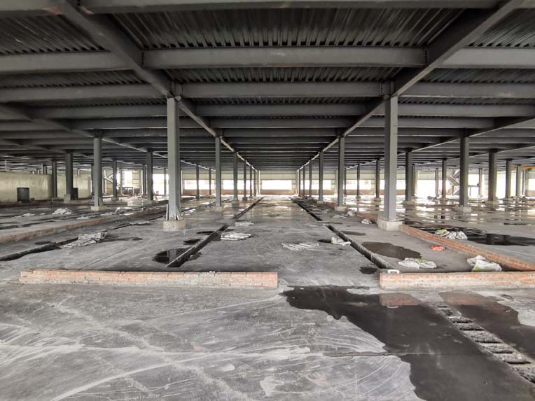 1、頂板施工完成50% 2、包柱子施工完成30% 3、固化地面施工完成20%
